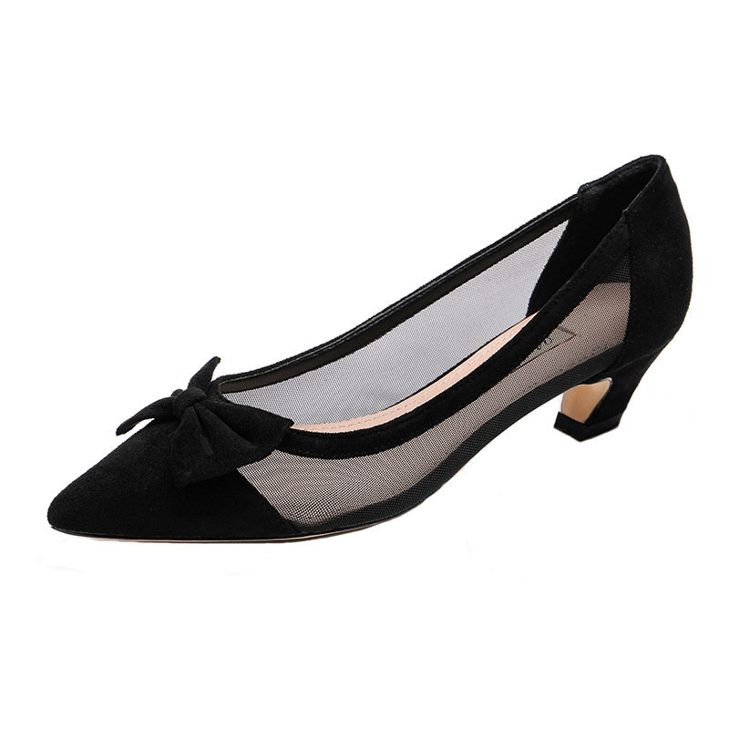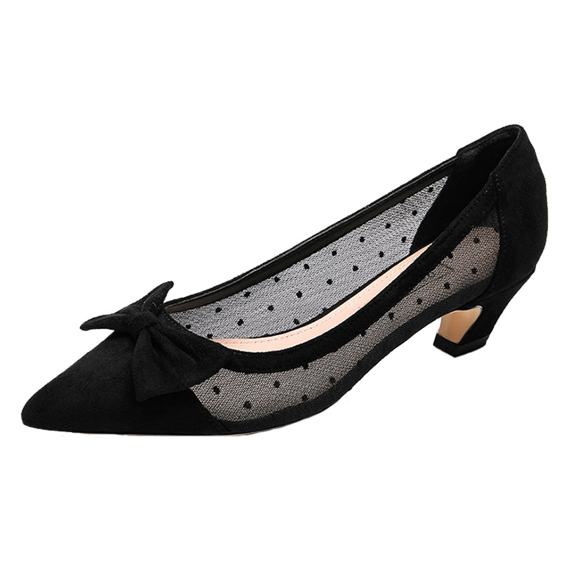 41-43 플러스 사이즈 여성용 메쉬 단층 신발 활 하이힐 폴카 도트 고양이 뒤꿈치 뾰족한 중공 스몰 사이즈 313233
