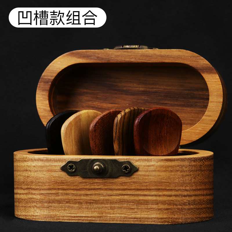 단단한 나무 기타 선택 세트 베이클라이트 민속 수제 파편 홈 미끄럼 방지 픽 재즈 단단한 나무 상자 성격스토어 가기