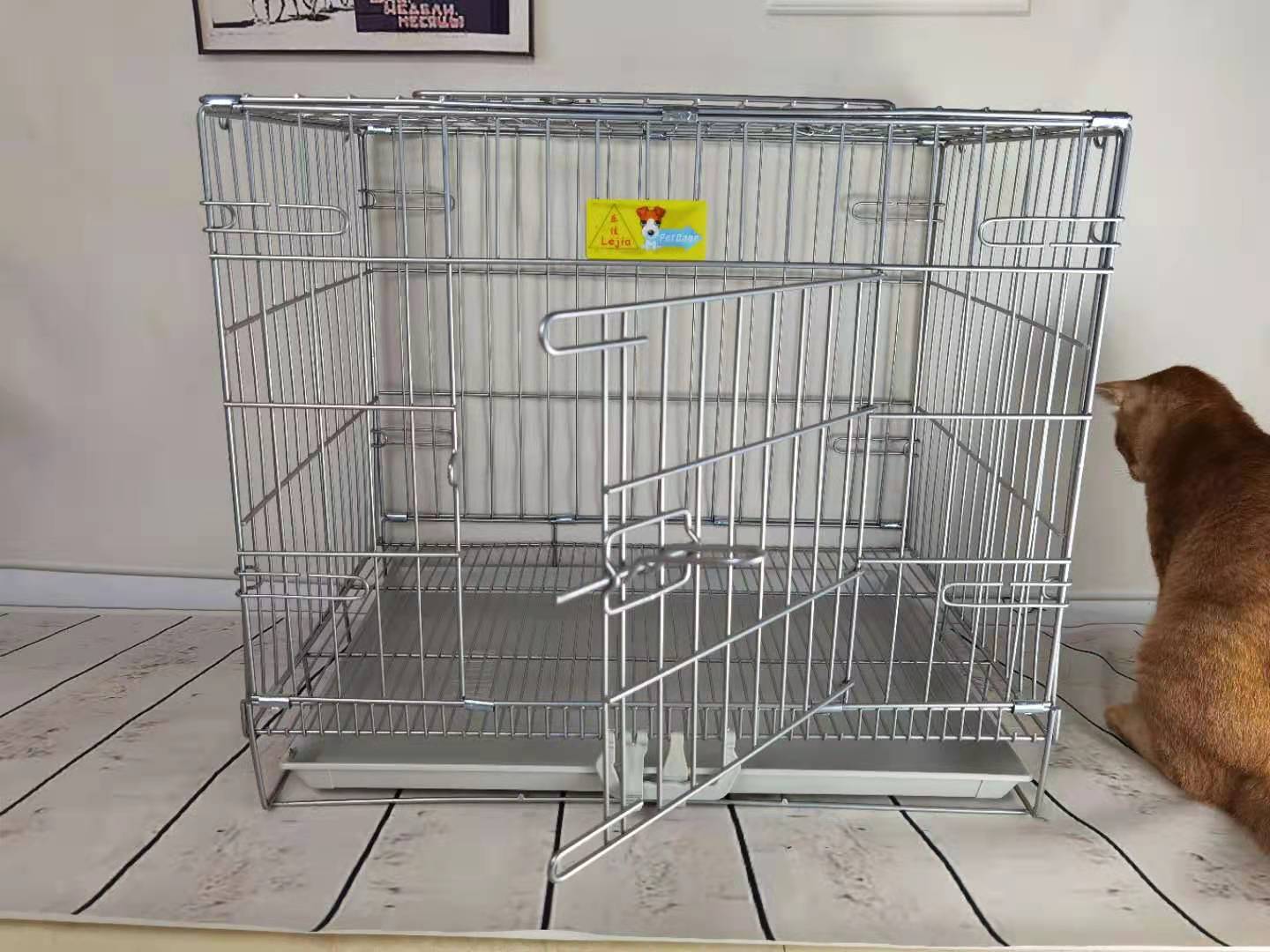 2英尺:长61×宽43×高50cm (适合25斤以下狗猫用) 净重:6.08公斤 (正面后面间隔3.2cm,顶层间隔3.2cm 底层间距 1.2cm 边格间距3cm 托盘长58.5cm 宽41.7cm)