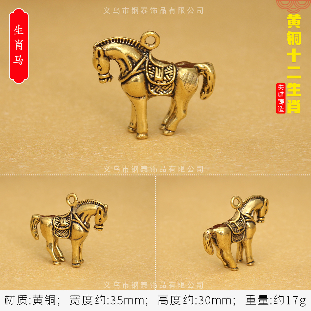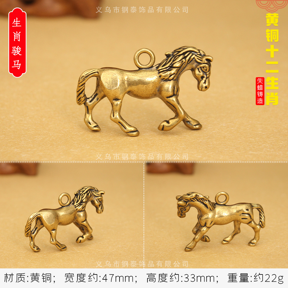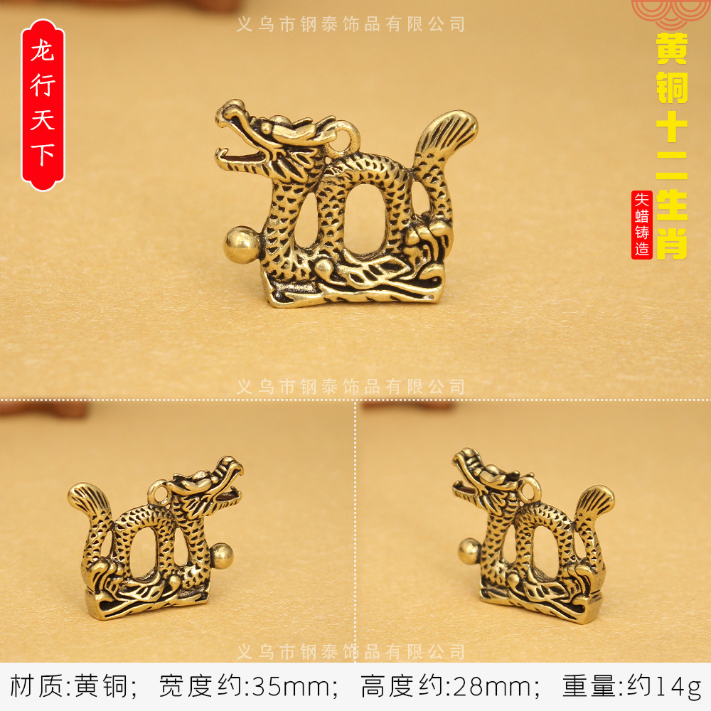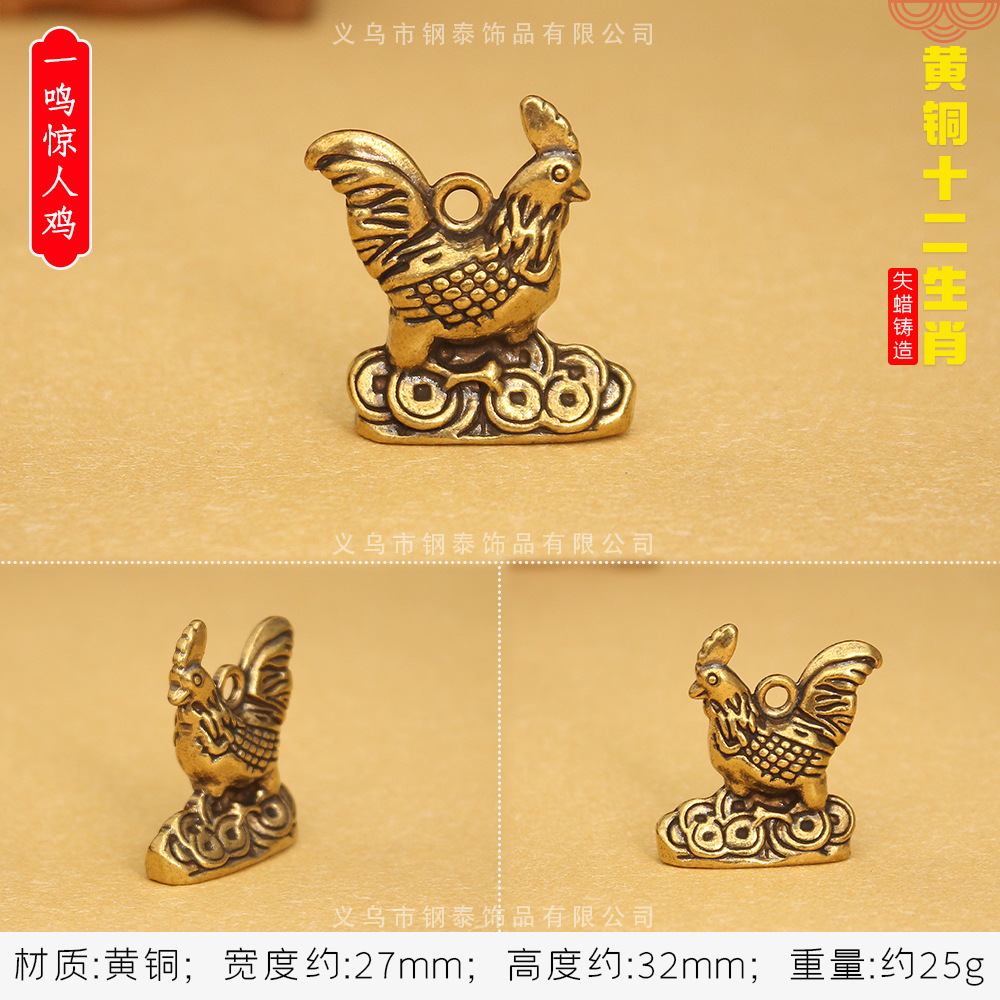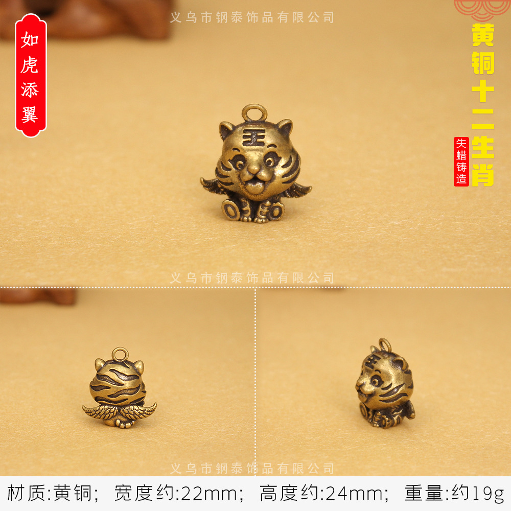 순수 구리 황동 조디악 키 펜던트 스테레오 조디악 구리 작은 청동 스톨 폭발 키 체인스토어 가기