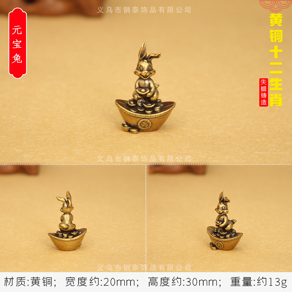 • 황동 3 차원 12 조디악 [잉곳 토끼]