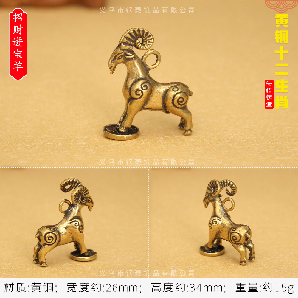 • 황동 3 차원 12 조디악 [행운의 양]]