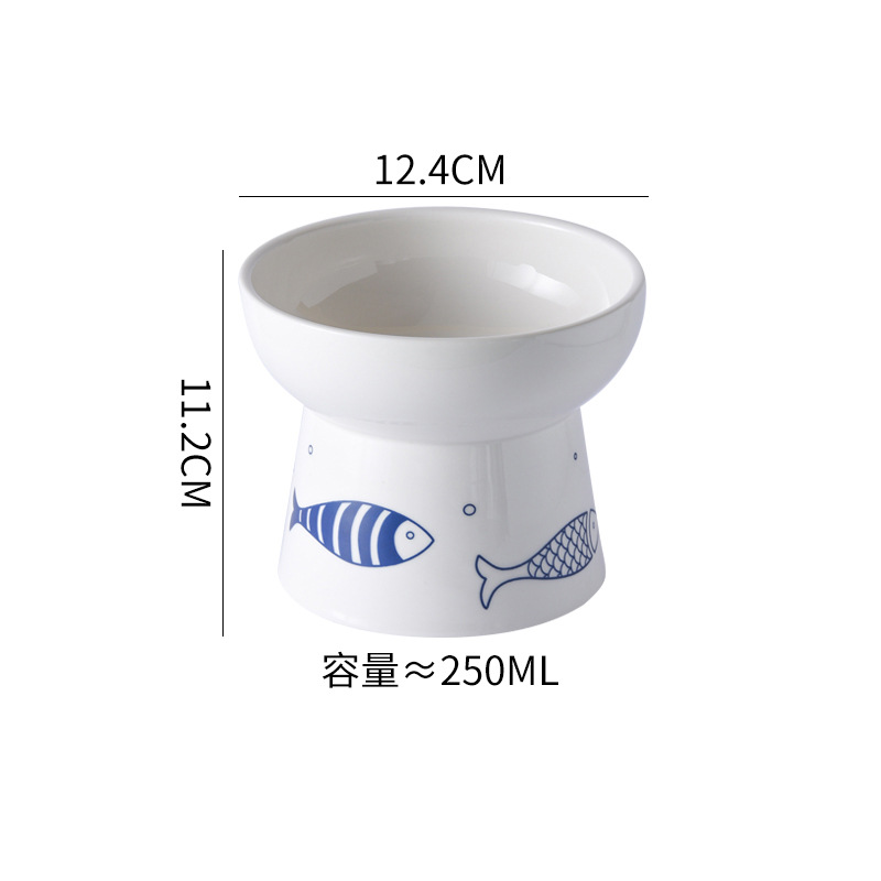 애완 동물 세라믹 그릇 일본식 고양이 그릇 높은 발 고양이 먹이 그릇 물 그릇 애완 동물 그릇 자궁 경부 척추 증 고양이 음식 분지 전복 방지 비스듬한스토어 가기