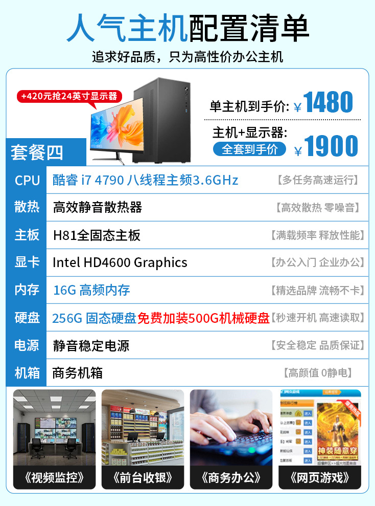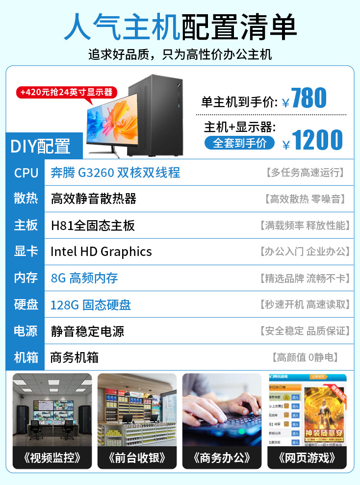 12G 독립 디스플레이 i3i5i7 인터넷 카페 e-스포츠 게임 데스크탑 컴퓨터 호스트 디자인 라이브 방송 조립 컴퓨터 전체 배치스토어 가기