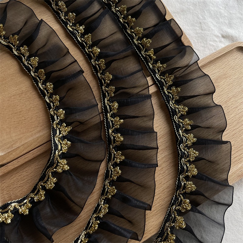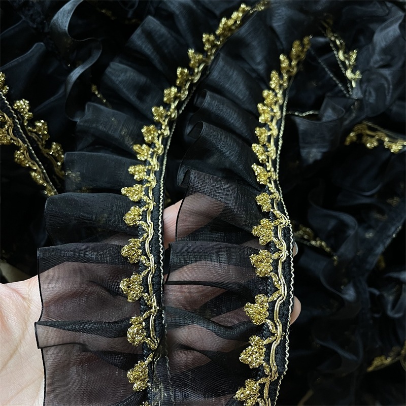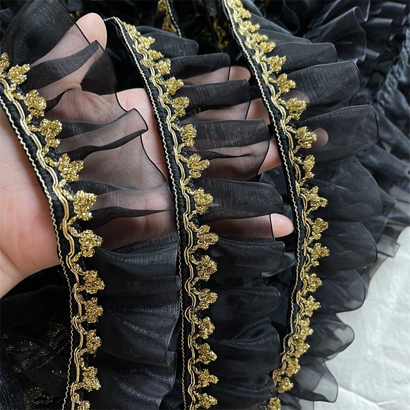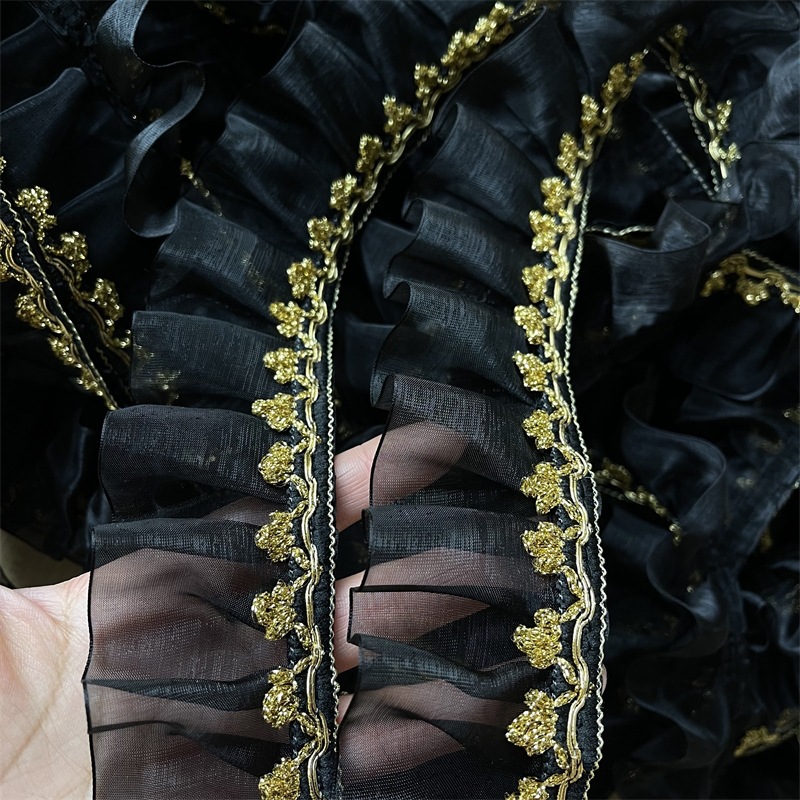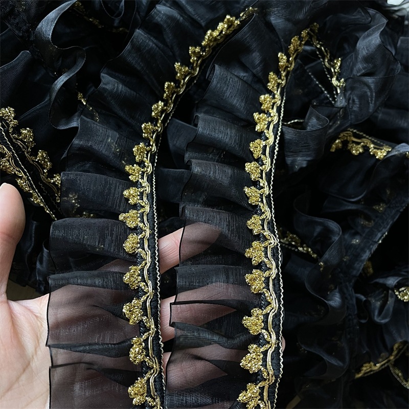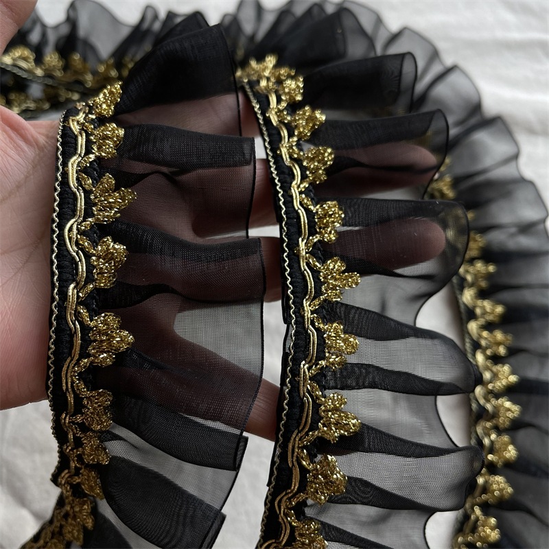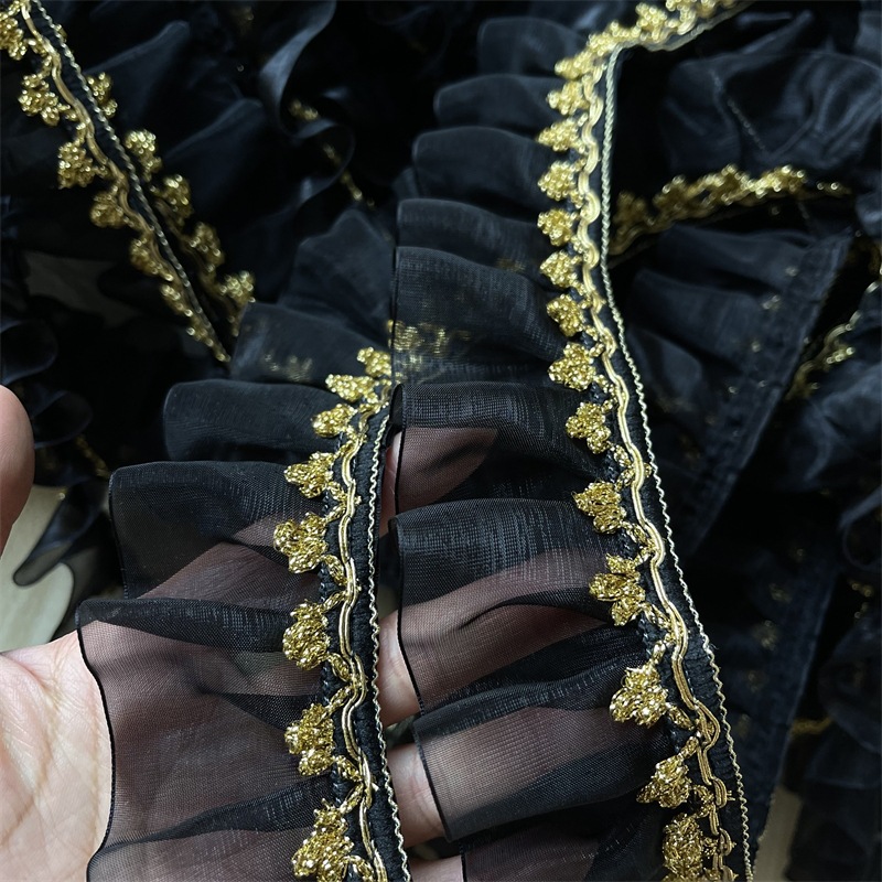 5cm 폭 검은 눈 거즈 골드 스레드 트림 3 차원 주름 로리타 스커트 커프 레이스 액세서리