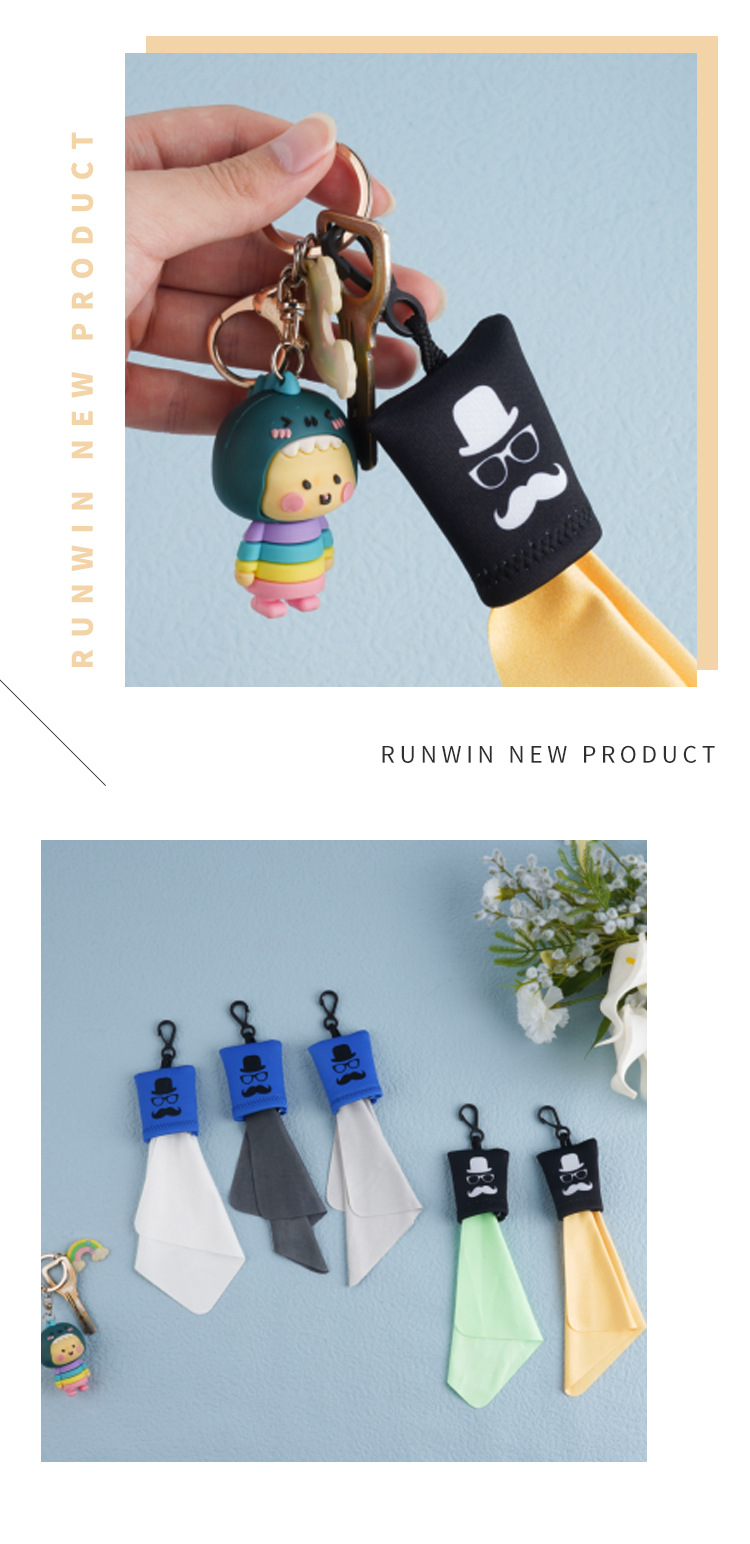 재고 인쇄 휴대용 키 체인 안경 천 버튼 야외 화면 청소 닦아 키 체인 안경 천스토어 가기