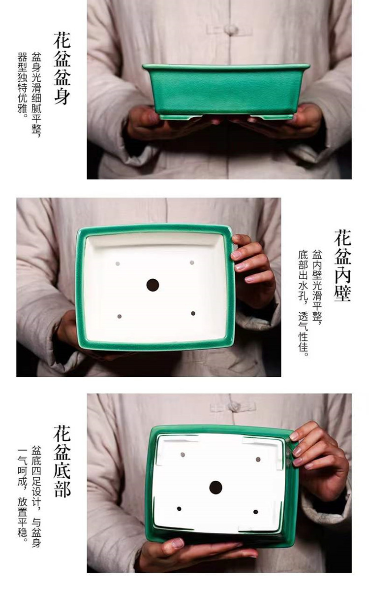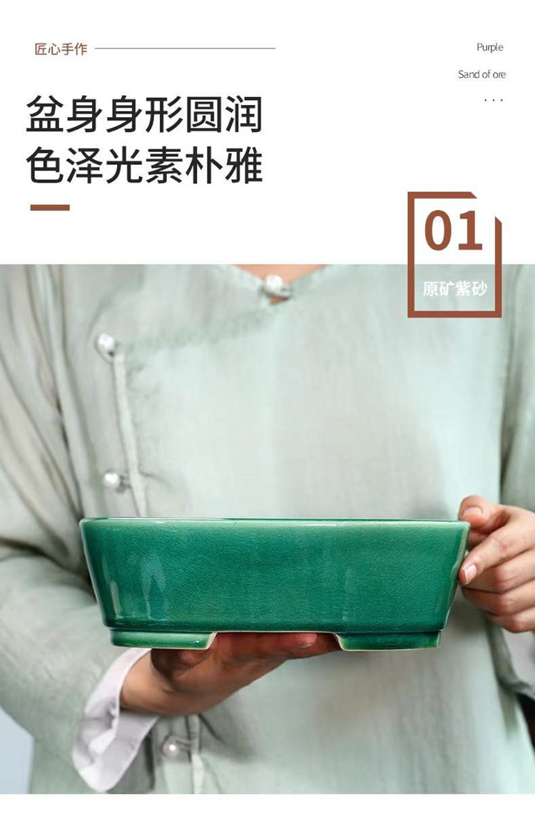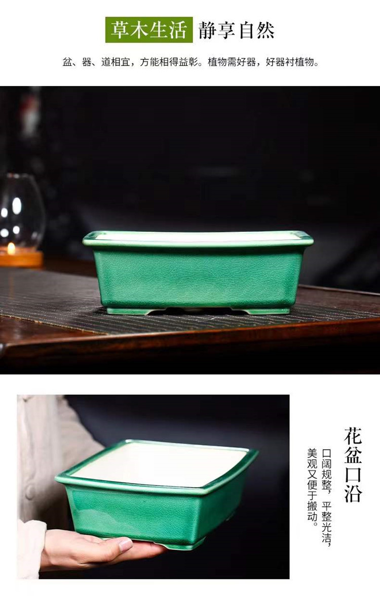 공장 도매 보라색 모래 화분 세라믹 직사각형 분재 냄비 구유 초록 식물 화분 얼음 갈라짐 유약 냄비 고급 해외 무역스토어 가기