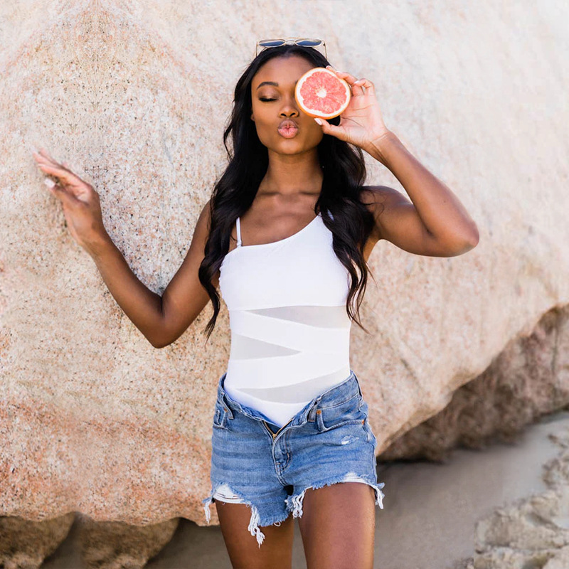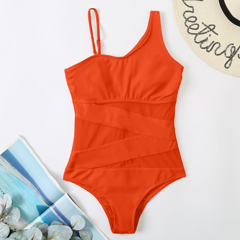 2025 새로운 유럽과 미국의 대외 무역 아마존 접합 거즈 원피스 원피스 수영복 여성 경사 어깨 공장 직접 판매스토어 가기