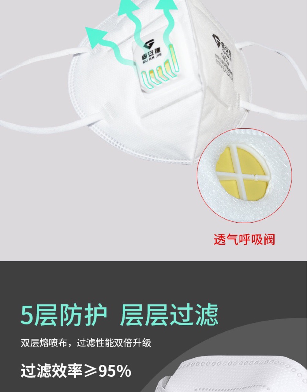 Junyu G9551 호흡 밸브 마스크 방진 마스크 ​​산업용 먼지 PM2.5 안티 스모그
