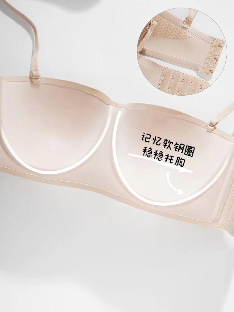 1718 얇은 탈착식 어깨끈 미끄럼 방지 반컵 튜브탑 노와이어 브라 무봉제 인비저블 브라