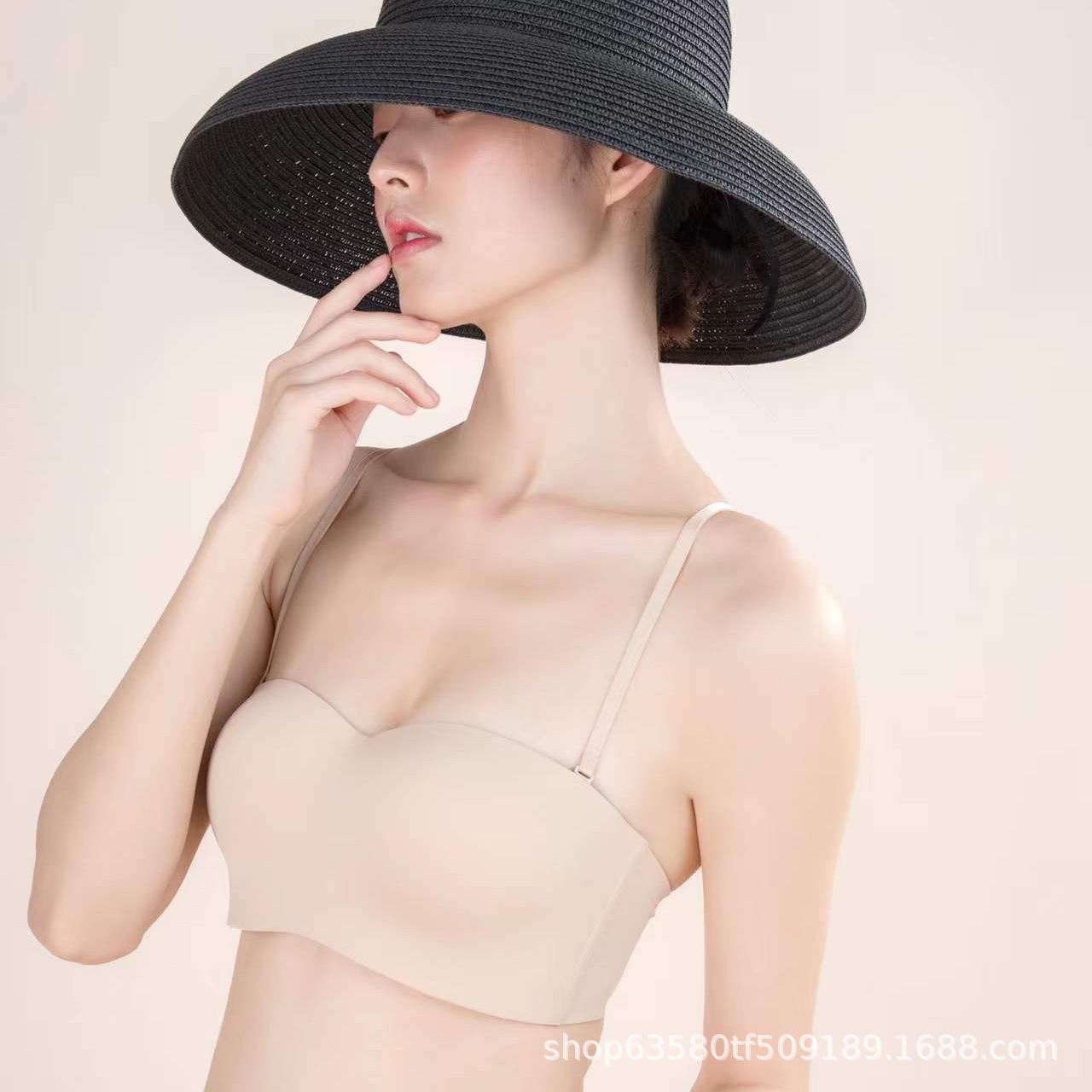 1718 얇은 탈착식 어깨끈 미끄럼 방지 반컵 튜브탑 노와이어 브라 무봉제 인비저블 브라스토어 가기