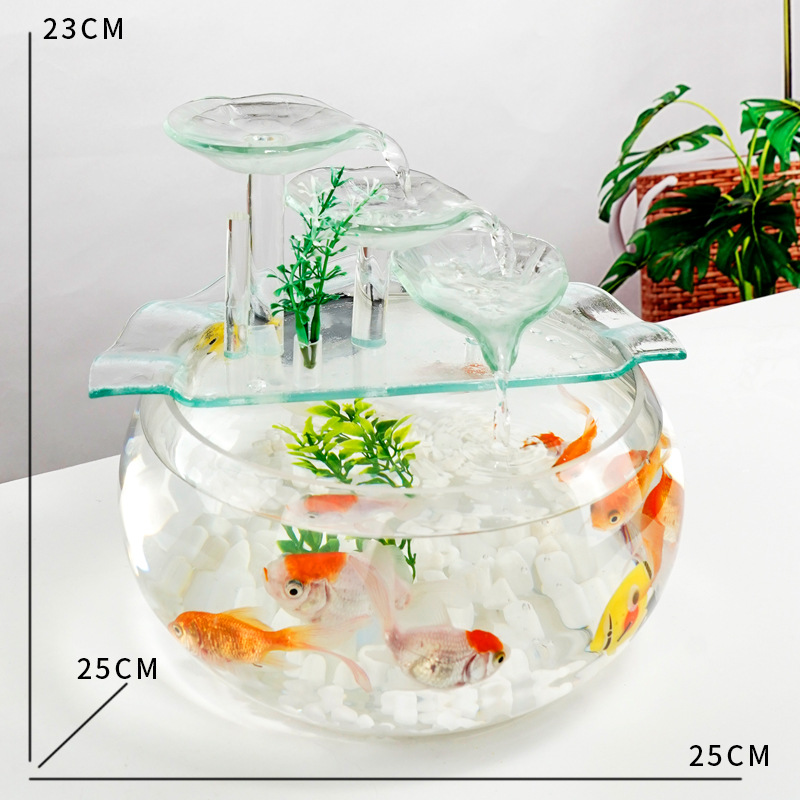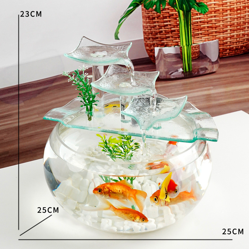 창조적 인 유리 작은 흐르는 물 금붕어 그릇 거실 데스크탑 풍경 순환 미니 장식 오프닝 집들이 선물