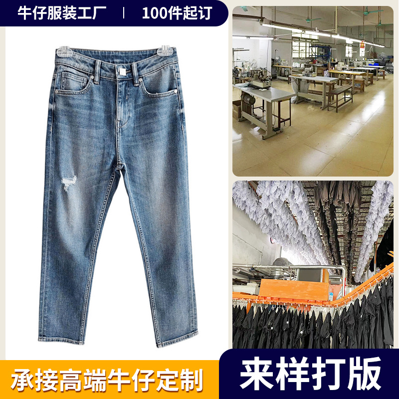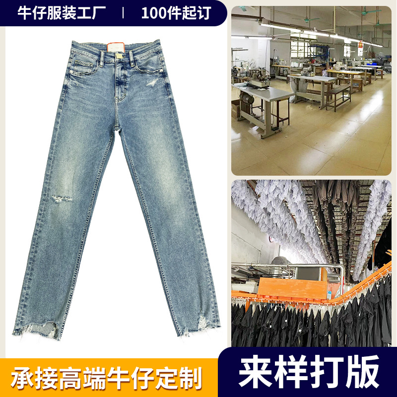 청바지 가공 공장 소량 주문 여성용 청바지 남성용 및 여성용 하이 웨이스트 스트레이트 레그 바지 다용도 스트레치 바지