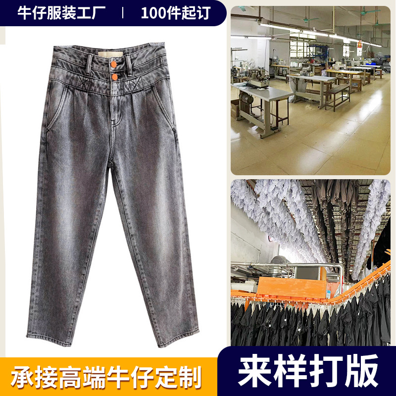 청바지 가공 공장 소량 주문 여성용 청바지 남성용 및 여성용 하이 웨이스트 스트레이트 레그 바지 다용도 스트레치 바지스토어 가기