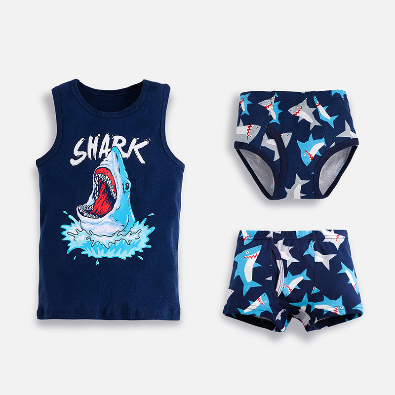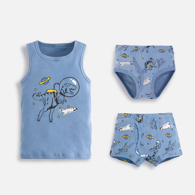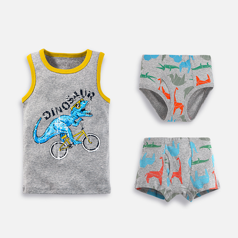 유럽과 미국 어린이 조끼 속옷 세트 여름 순면 실 소년의 I-word 뒤로 아기 소년의 민소매 3 피스 팩