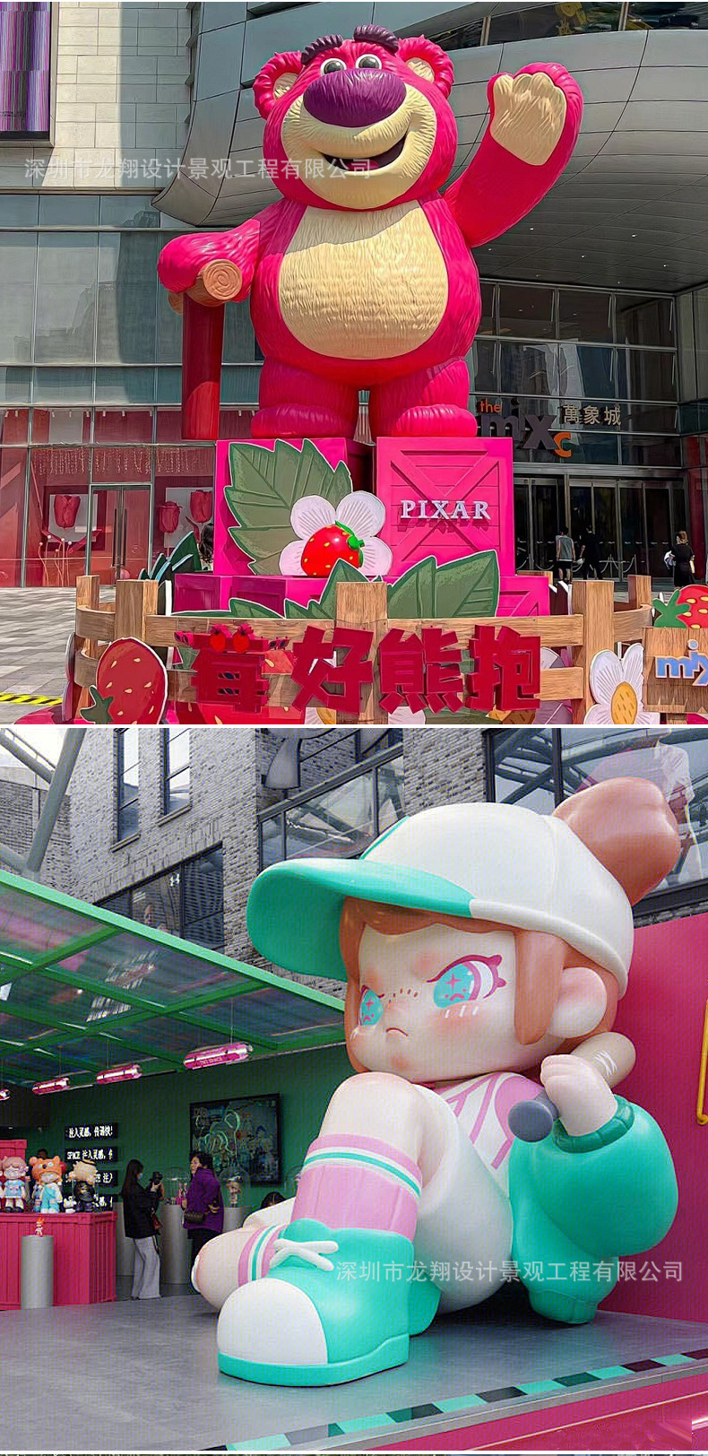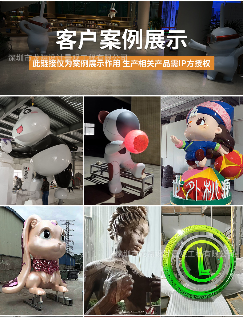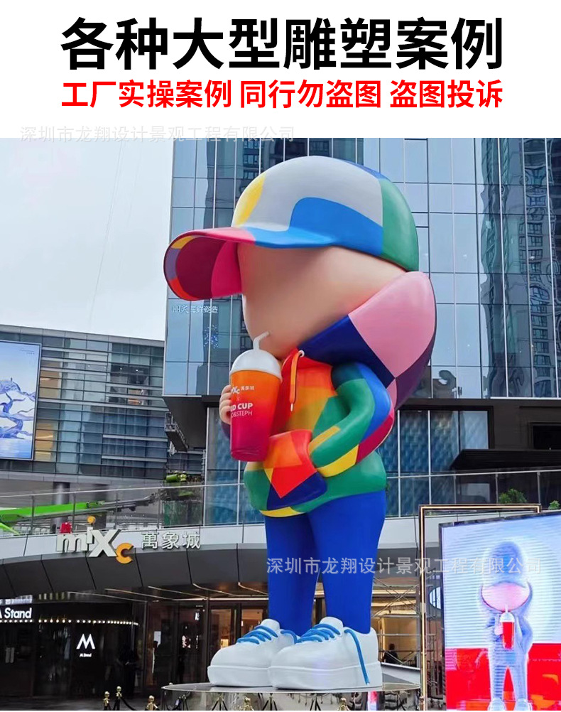 대형 유리 섬유 조각 만화 IP 인형 상업 디스플레이 장식품 야외 정원 조경 예술 설치 제조 업체