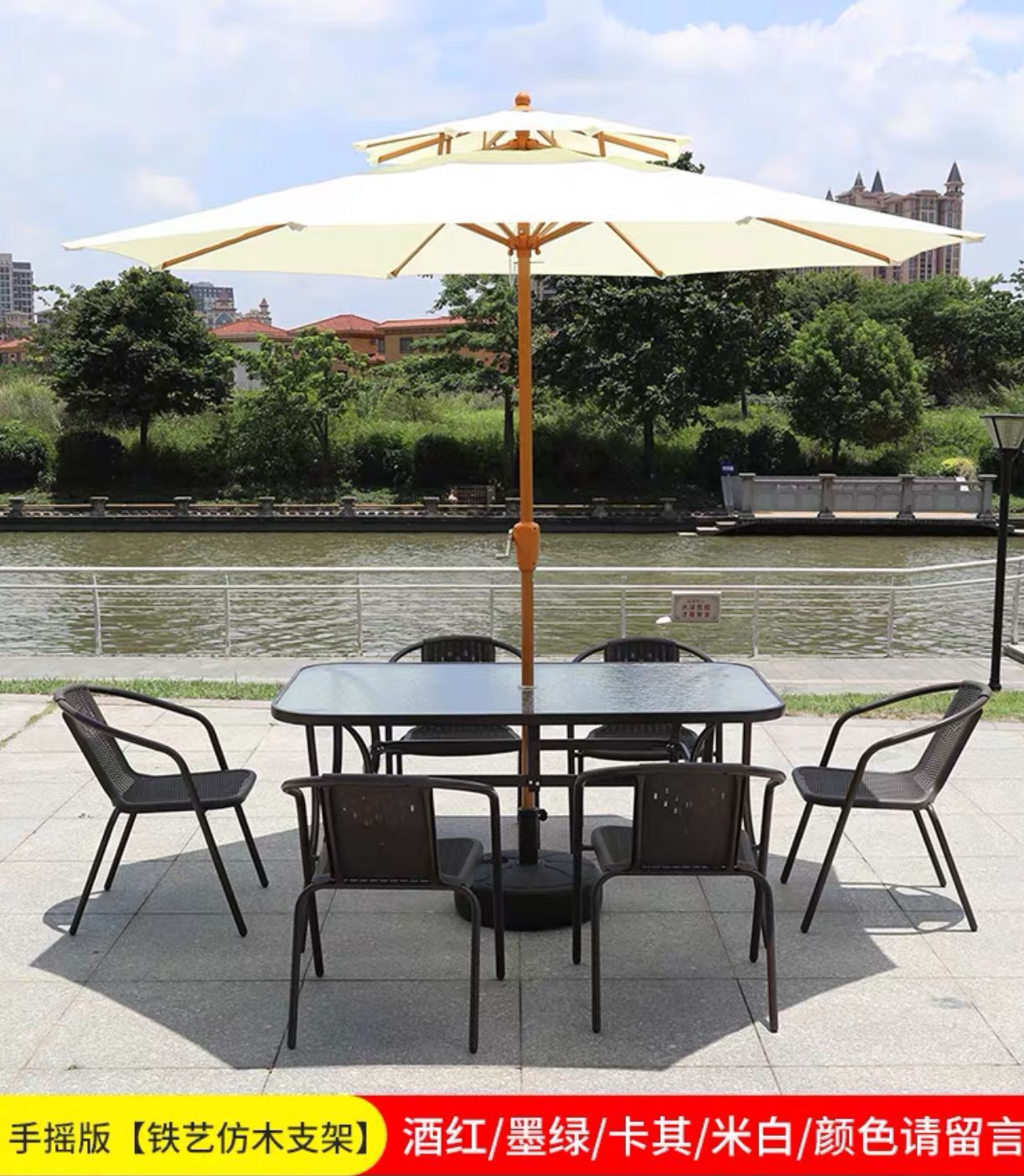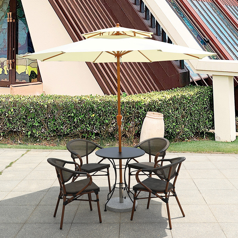 • 2.7 m [아이보리] 우산 + 150*90 다크 브라운 테이블 + 보르도 의자 6 개