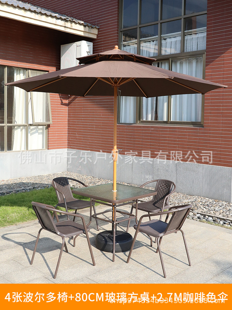 • 2.7 m [다크 브라운] 우산 + 80 다크 브라운 사각 테이블 + 4 보르도 의자