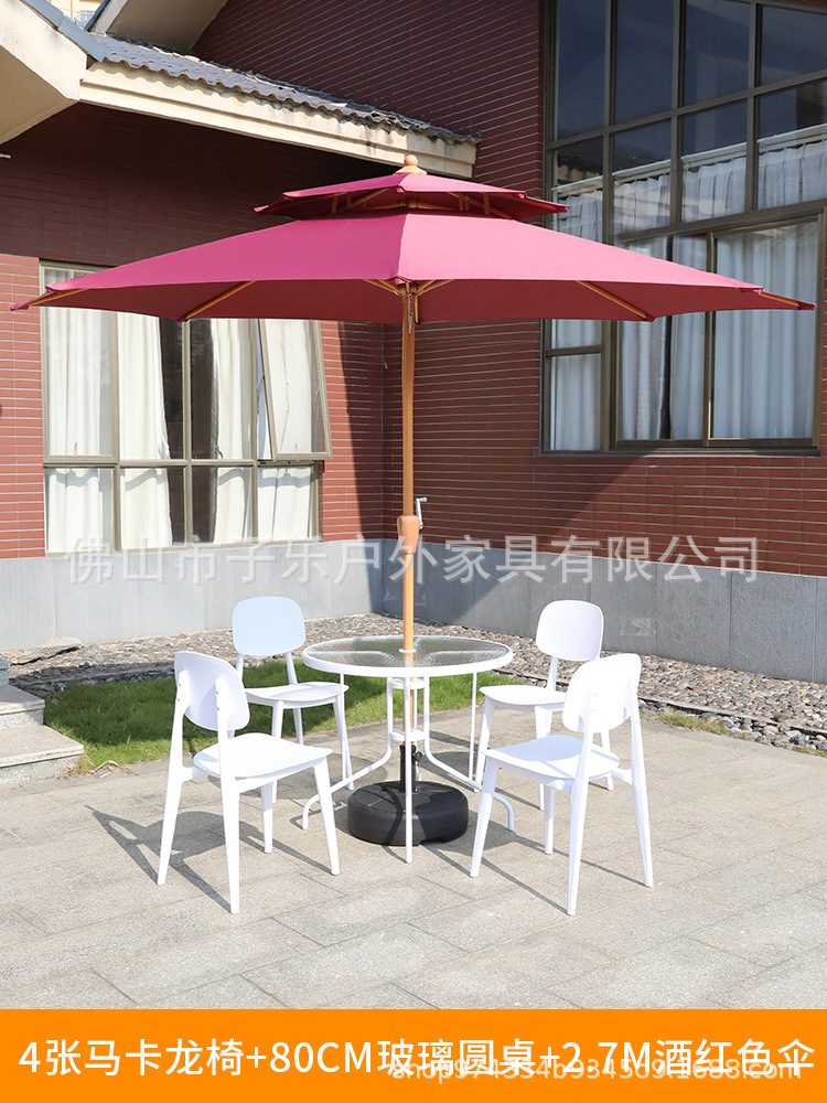 • 2.7 m [버건디] 우산 + 흰색 테이블 80 개 + 마카롱 의자 4 개