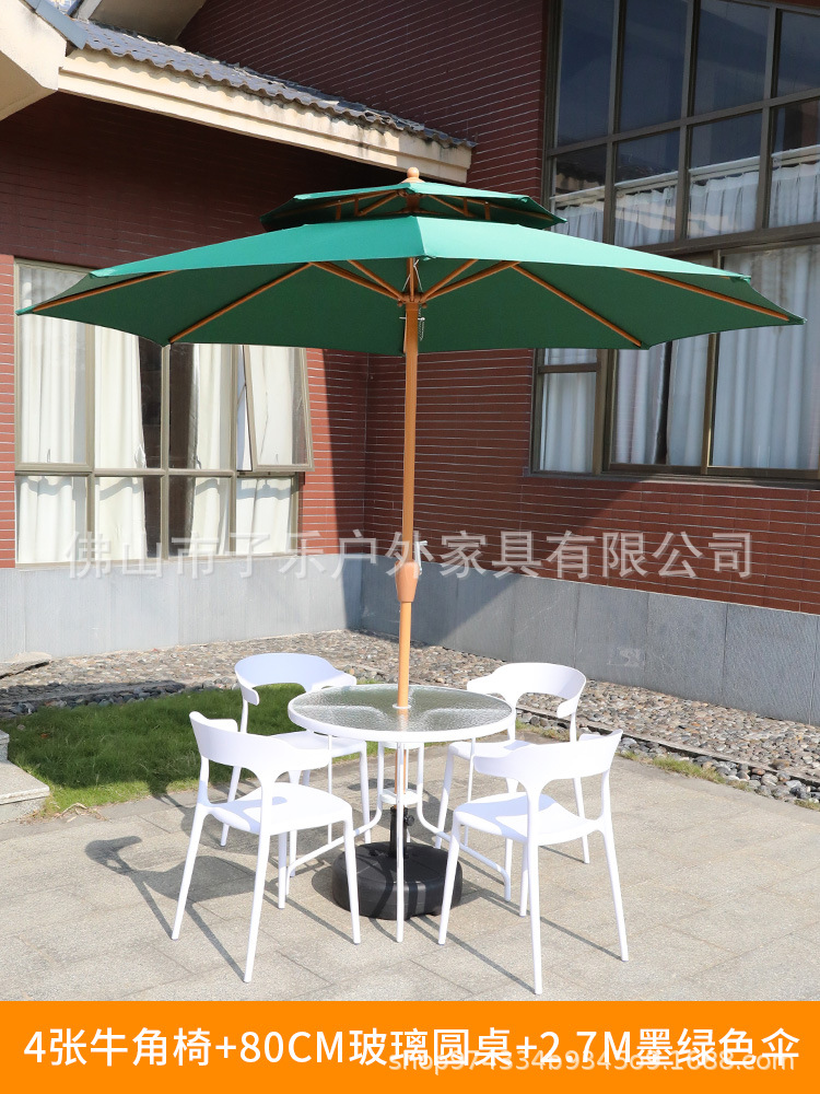 • 2.7 m [다크 그린] 우산 + 흰색 테이블 80 개 + 뿔 의자 4 개