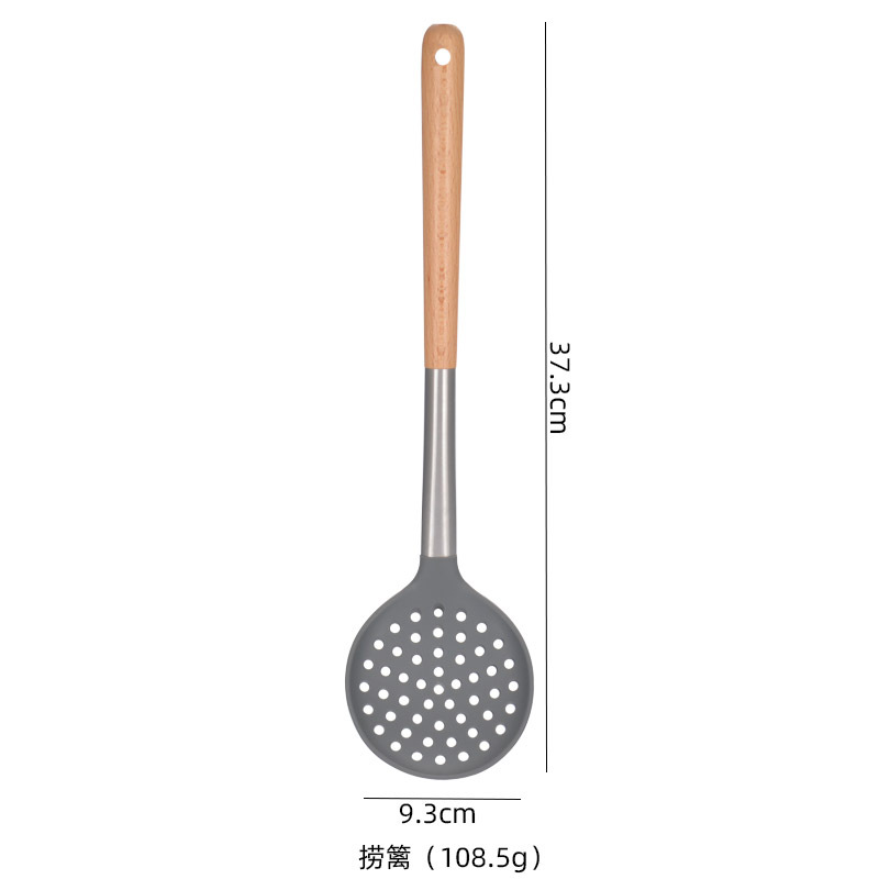 너도밤나무 손잡이 실리콘 주방용품 3 종 세트 긴 손잡이 실리콘 수프 스푼 국자 붙지 않는 주방 조리 도구