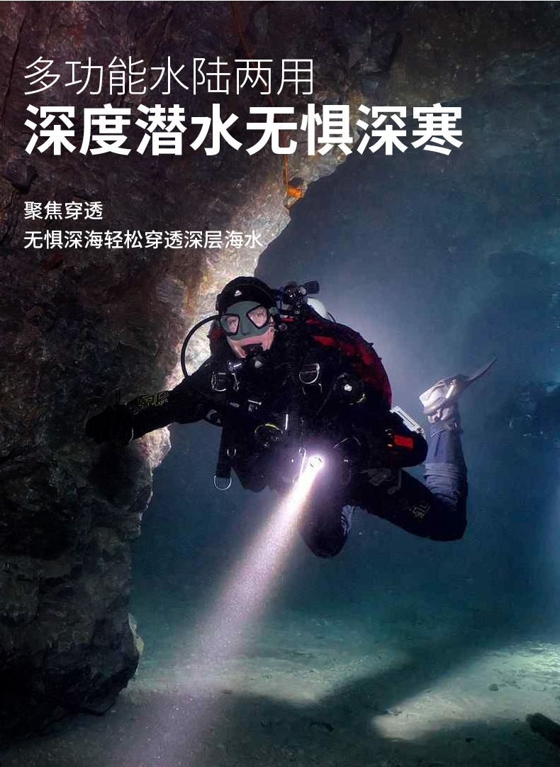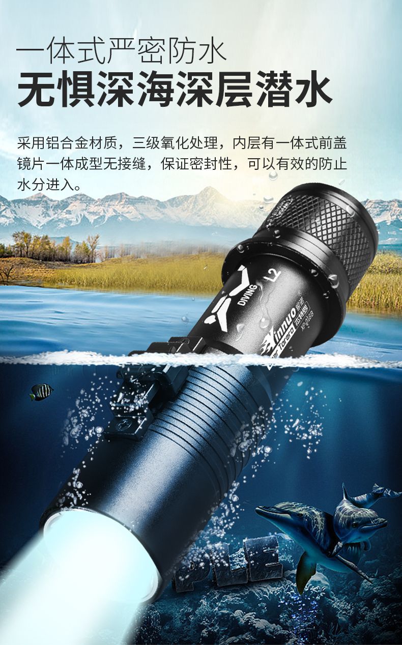 다이빙 손전등 충전 수중 전문 자기 스위치 조명 강한 빛 방수 특수 슈퍼 밝은 야외 조명스토어 가기