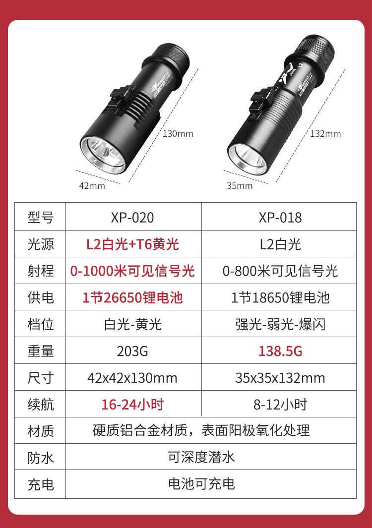 • XP-020-Dual 광원 (Magnetron 스위치):26650 하나의 전기와 하나의 충전