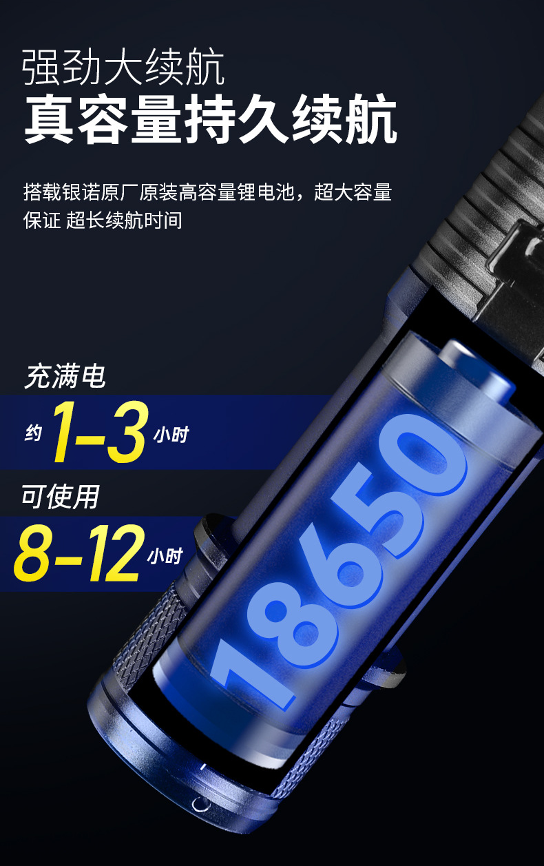 • XP-020-Dual 광원 (Magnetron 스위치):26650 2 개의 전기와 1 개의 충전