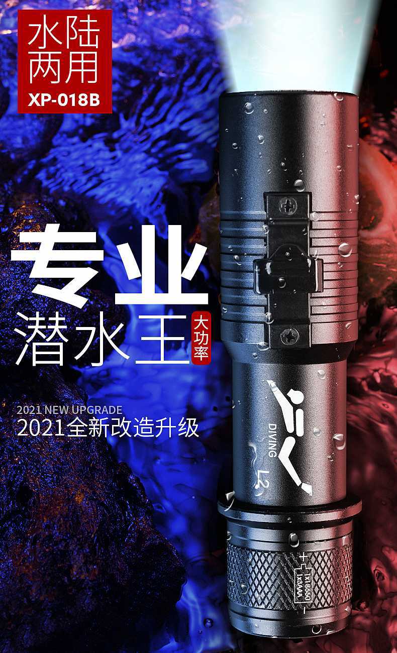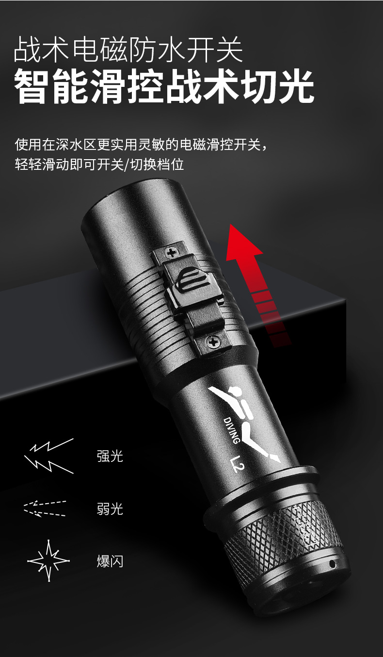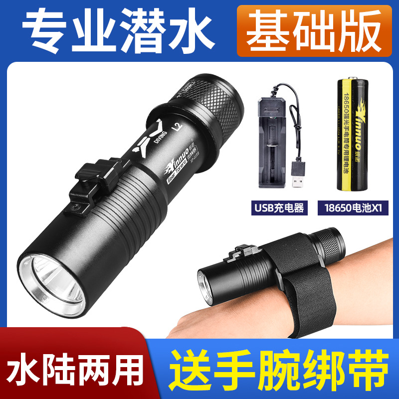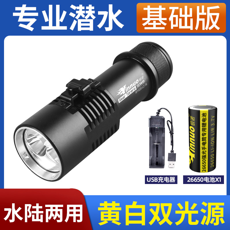 다이빙 손전등 충전 수중 전문 자기 스위치 조명 강한 빛 방수 특수 슈퍼 밝은 야외 조명