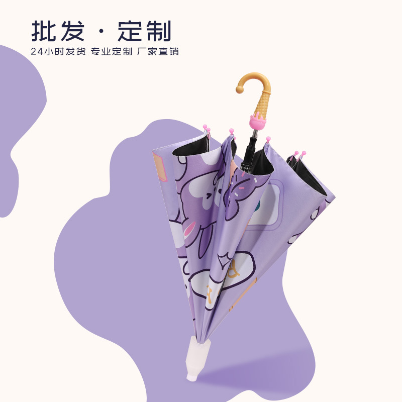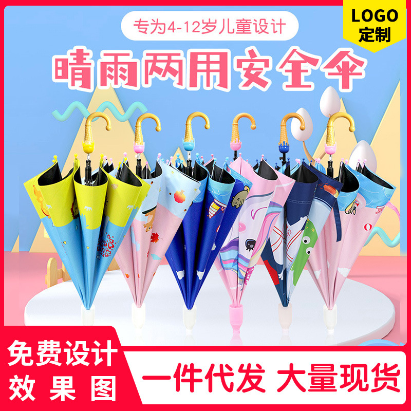어린이용 안전 안티리바운드 우산, 초등학생 유치원생용 만화 캐릭터 블랙 글로스 비닐 우산, 비와 햇빛 모두에 사용 가능, 로고 인쇄, 광고용, 차양용