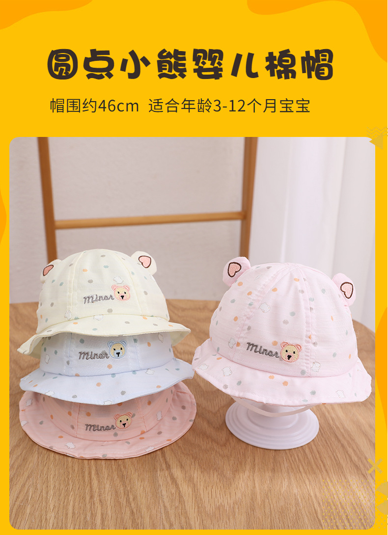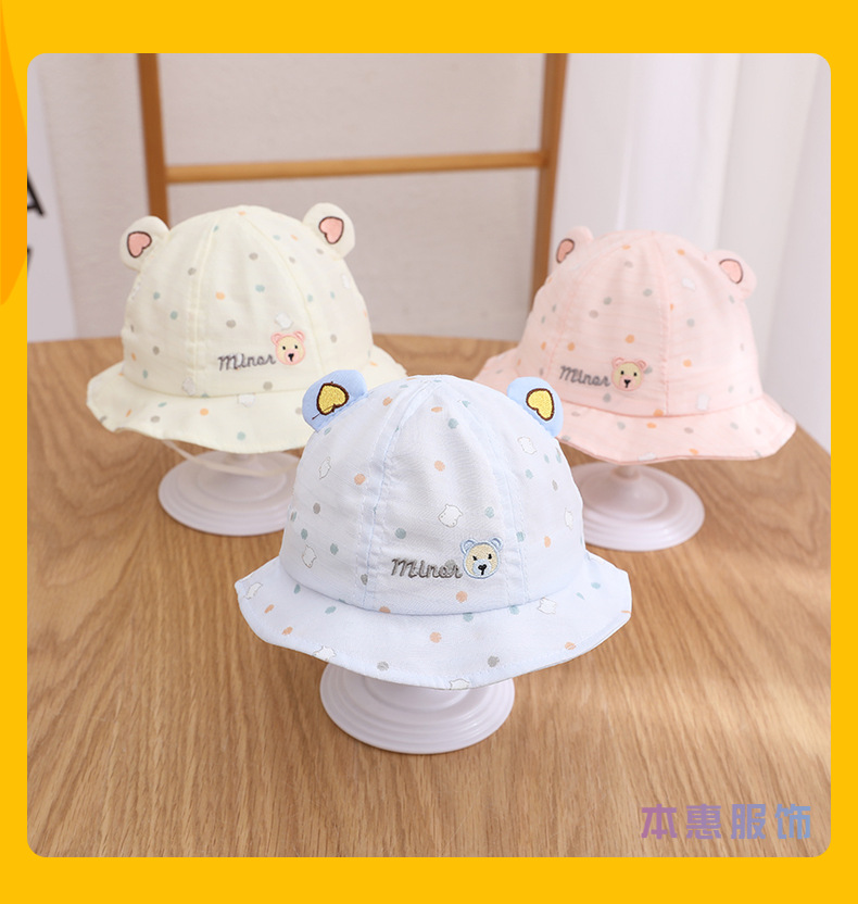 도트 베어 아기 자외선 차단제 모자 여름 아기 모자 만화 어린이 모자 3-12 개월 아기 어부 모자스토어 가기