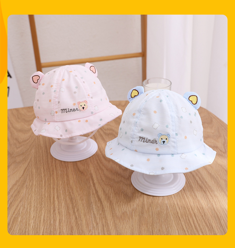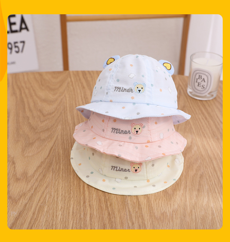 도트 베어 아기 자외선 차단제 모자 여름 아기 모자 만화 어린이 모자 3-12 개월 아기 어부 모자