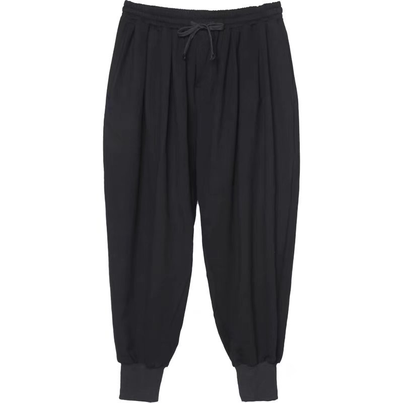 크롭 아이스 실크 바지 남성용 여름 얇은 스트레이트 느슨한 한국 유행 모든 매치 캐주얼 바지