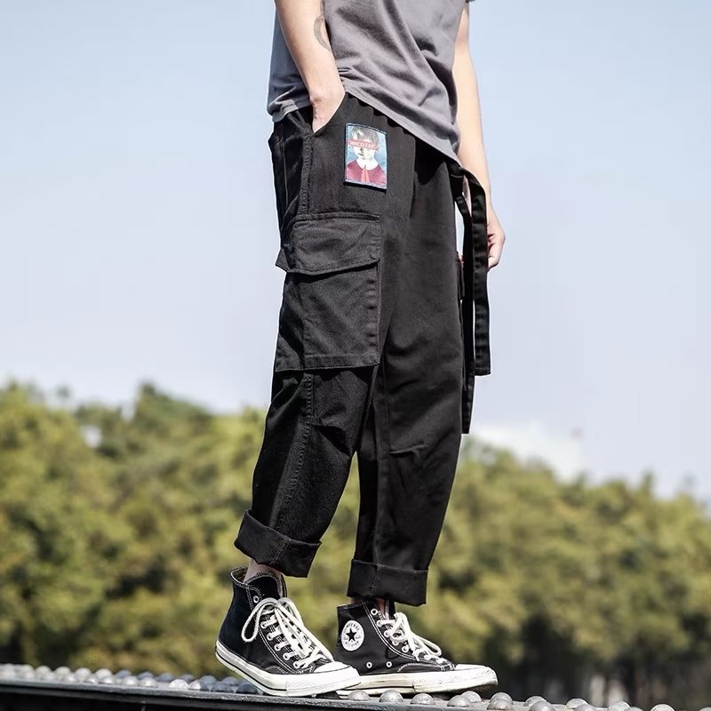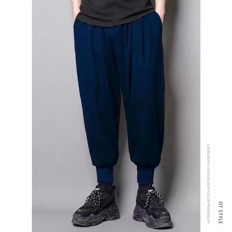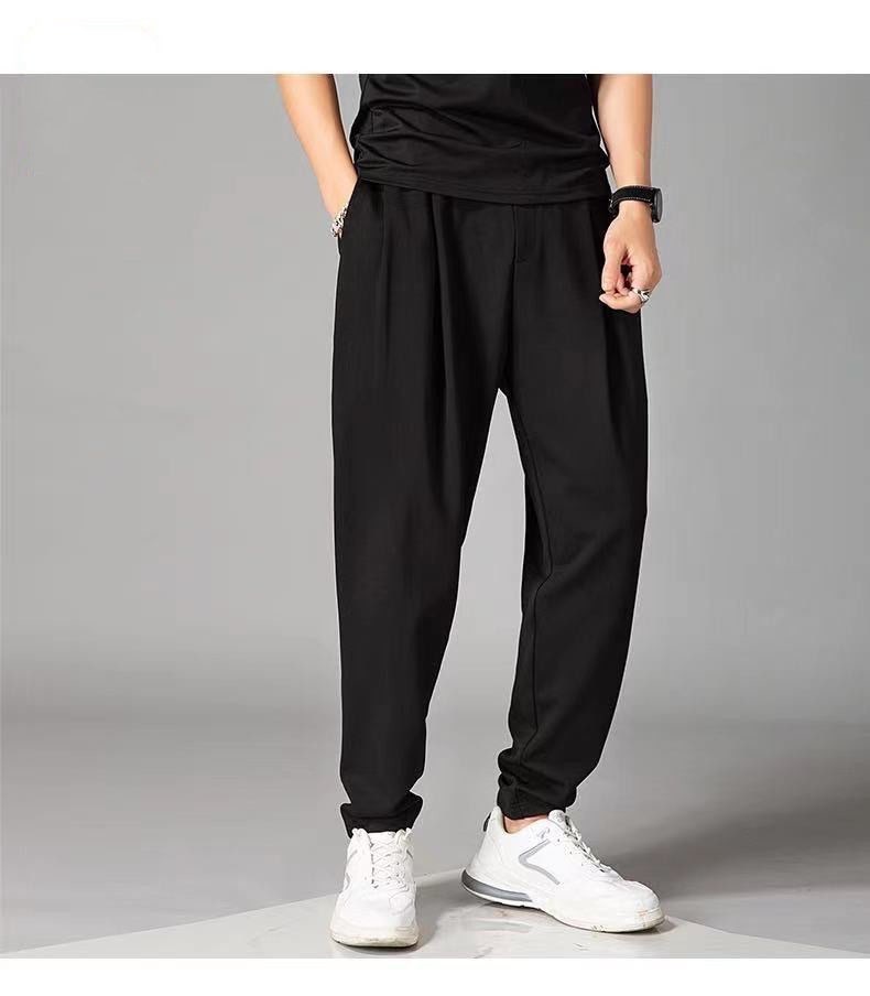 크롭 아이스 실크 바지 남성용 여름 얇은 스트레이트 느슨한 한국 유행 모든 매치 캐주얼 바지스토어 가기
