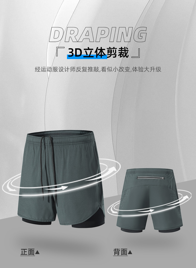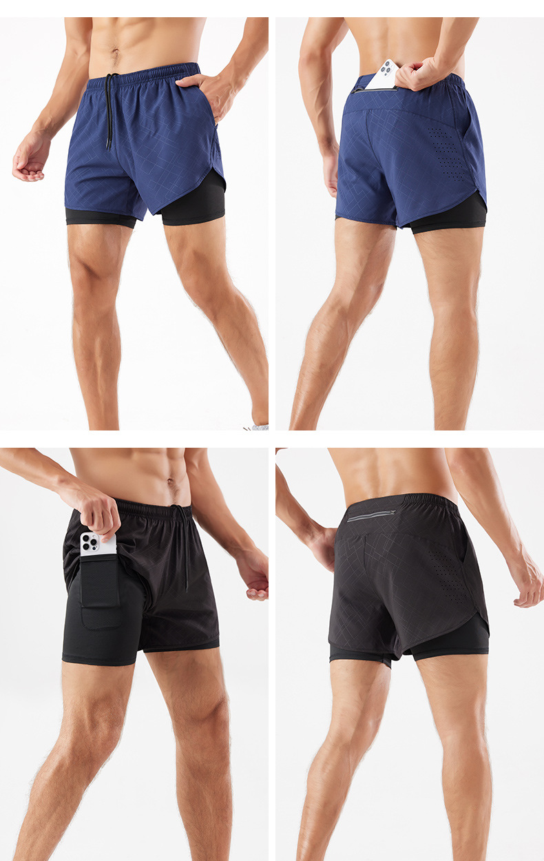 스포츠 반바지 남성용 러닝 마라톤 육상 느슨한 3 점 바지 속건 안감 안티 러닝 더블 레이어 피트니스 반바지스토어 가기