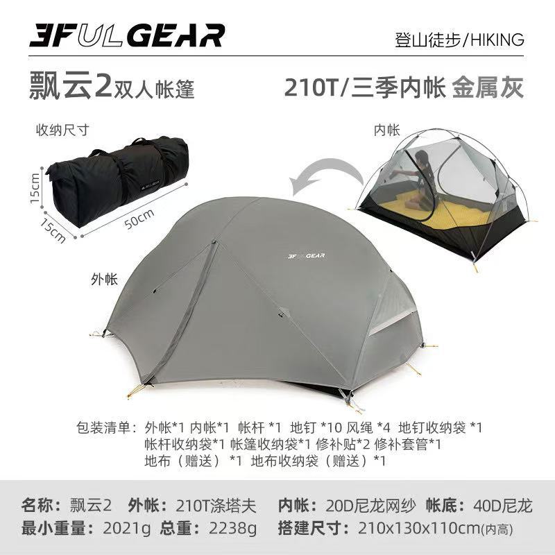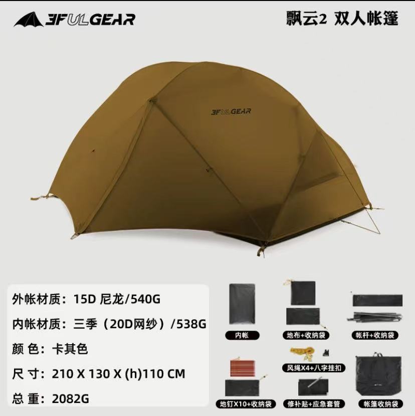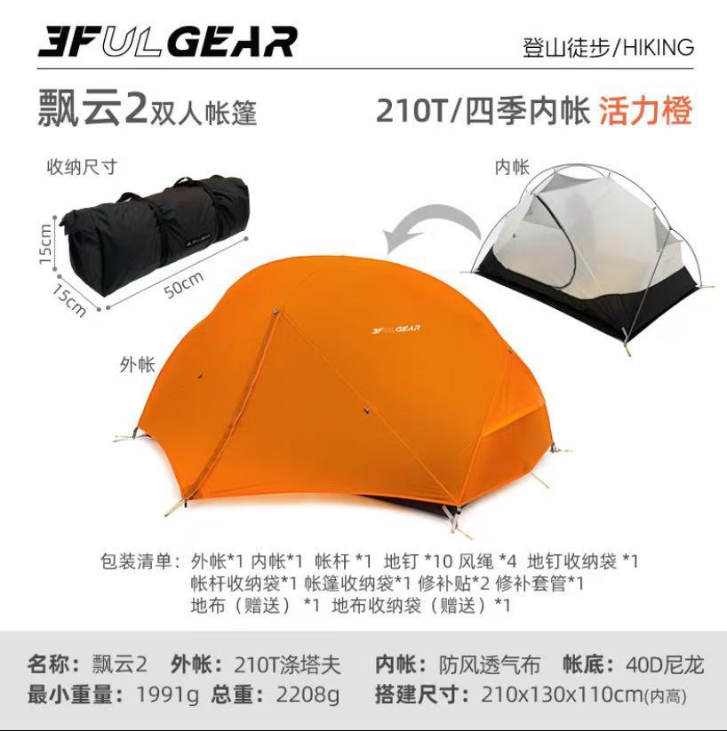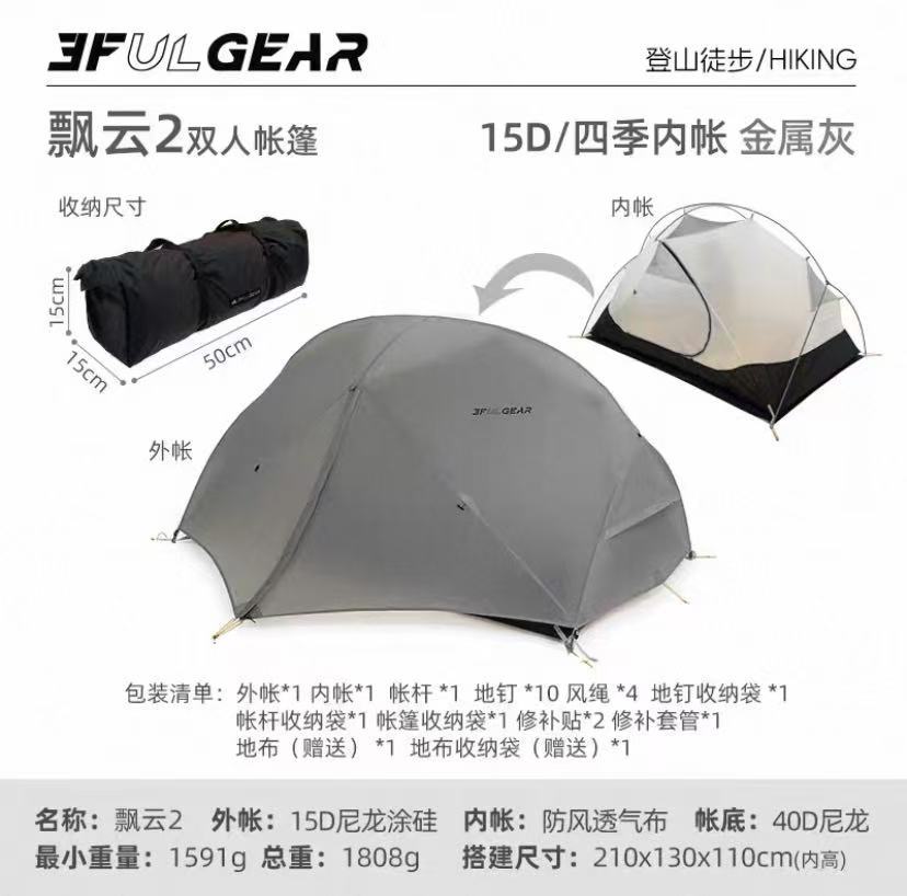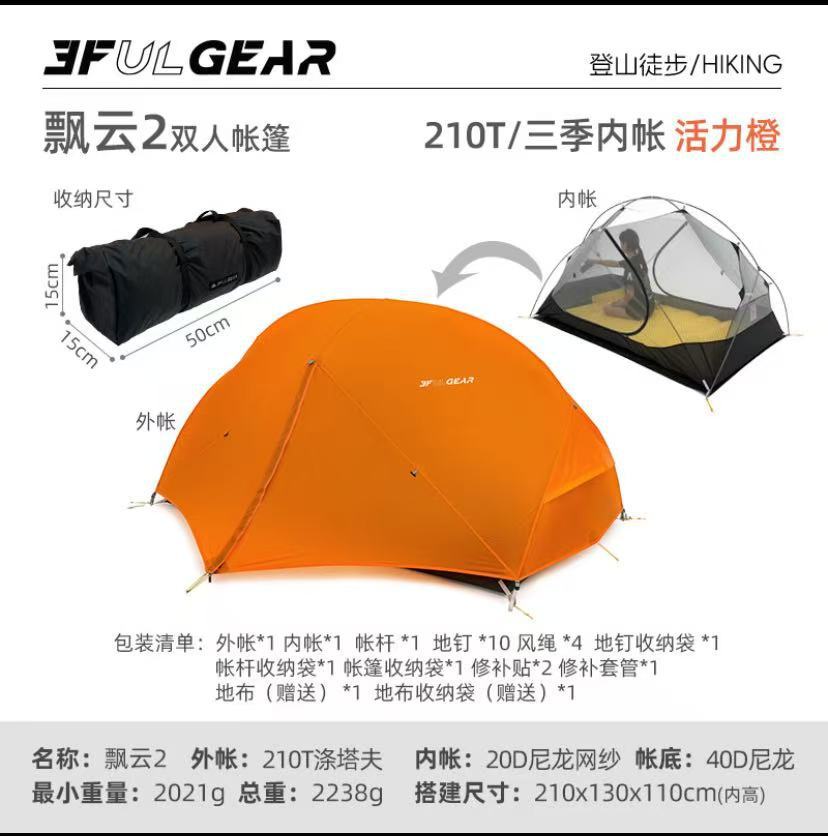 此链接为飘云双人帐篷,有15D涂硅面料和210T涤纶面料两个版本可选择