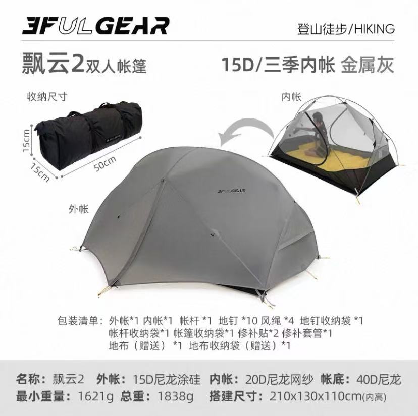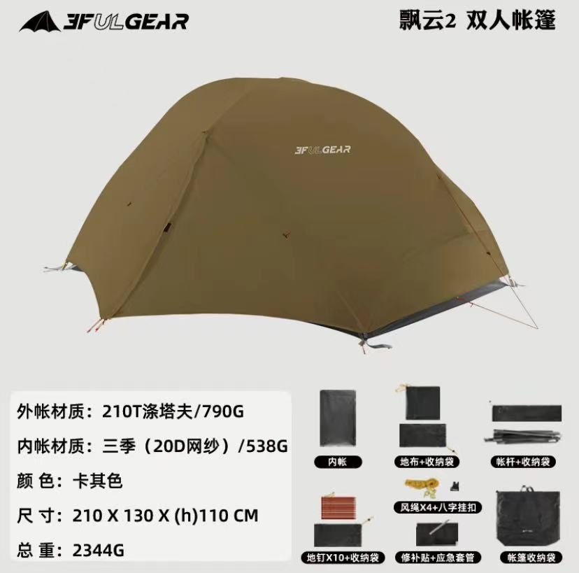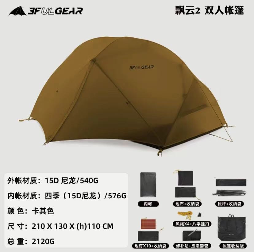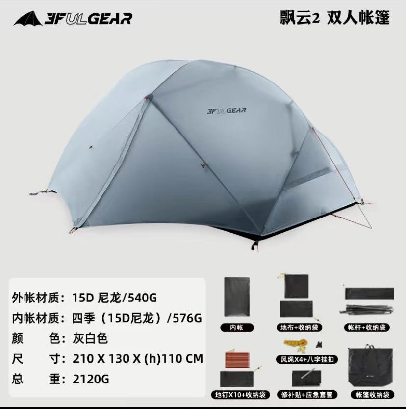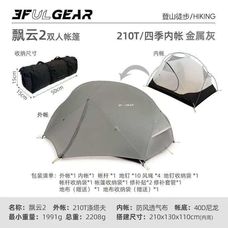 此链接为飘云双人帐篷,有15D涂硅面料和210T涤纶面料两个版本可选择