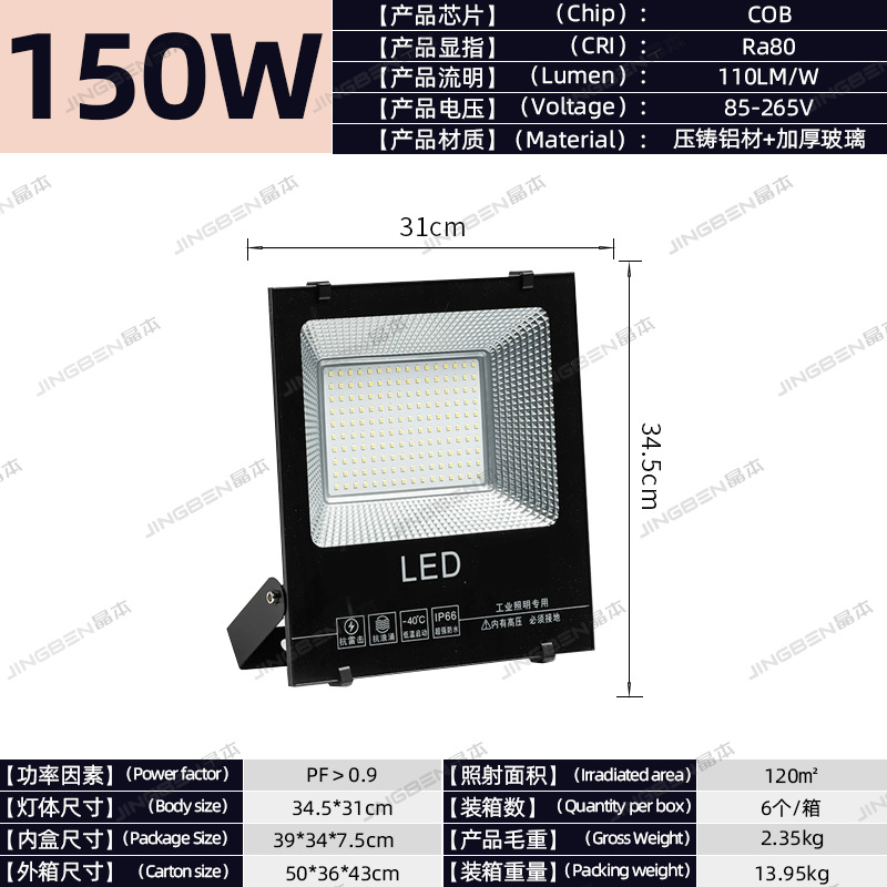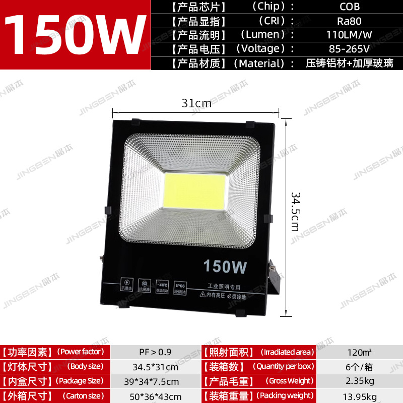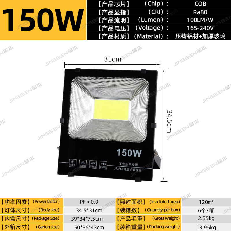 • 건설 현장 추천 - 150W | 집광 COB 칩 | 정격 와트, 허위 스펙 없음