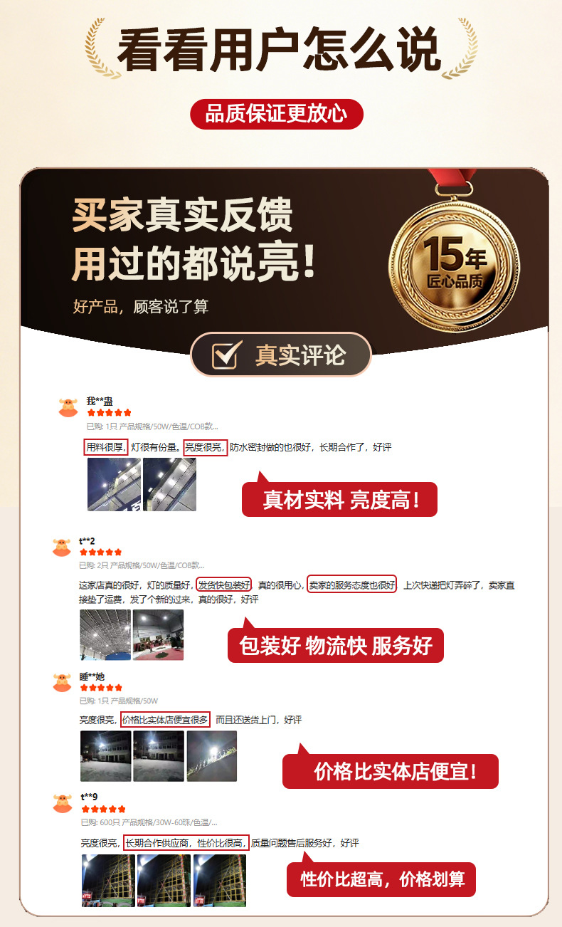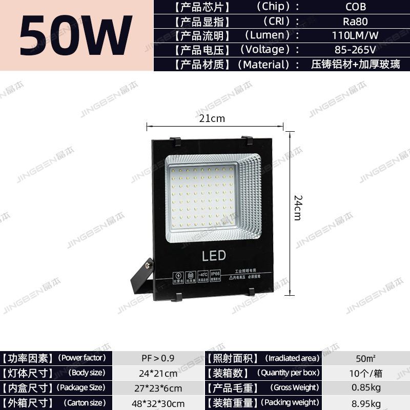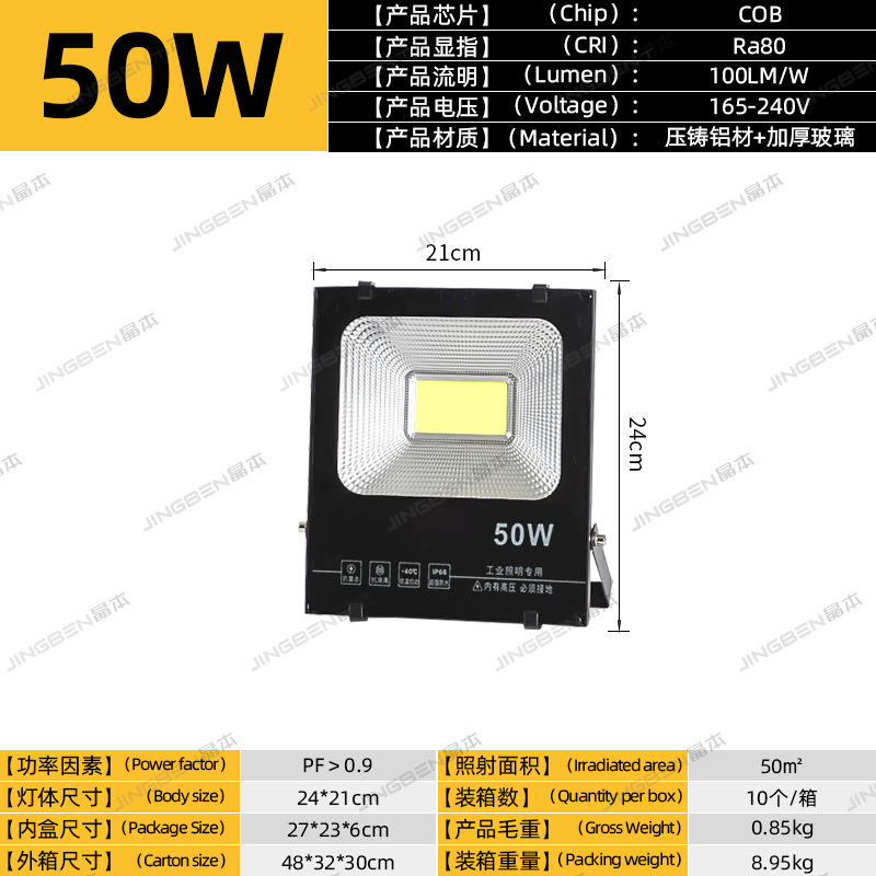 • 건설 현장 추천 - 50W | 집광 COB 칩 | 정격 와트, 허위 스펙 없음