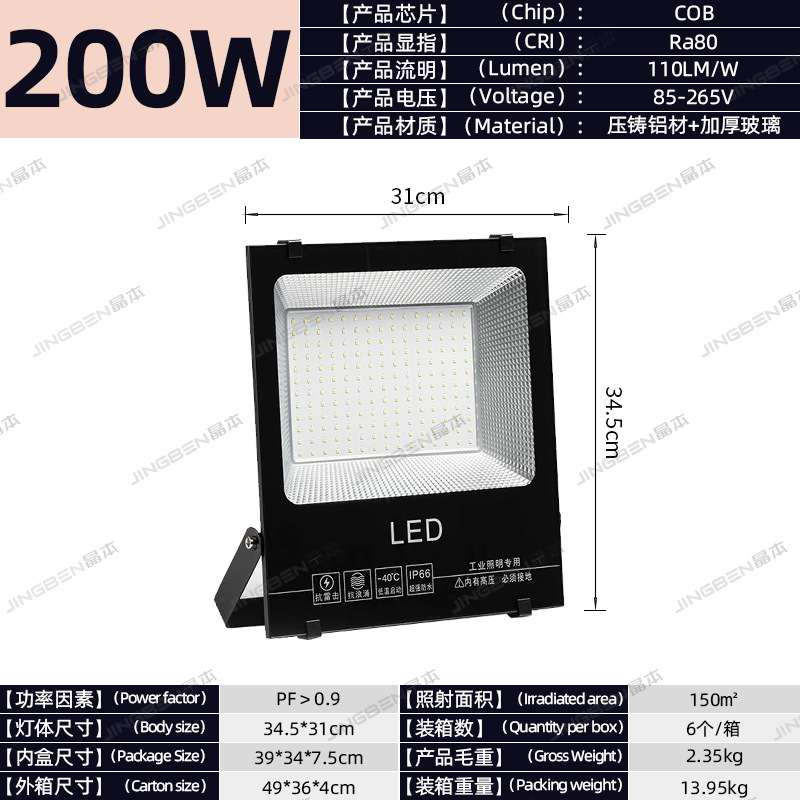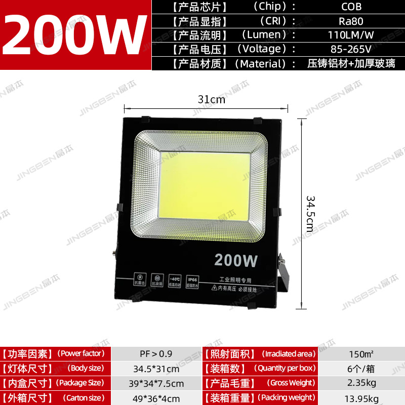 • 건설 현장 추천 - 200W | 집광 COB 칩 | 정격 와트, 허위 스펙 없음