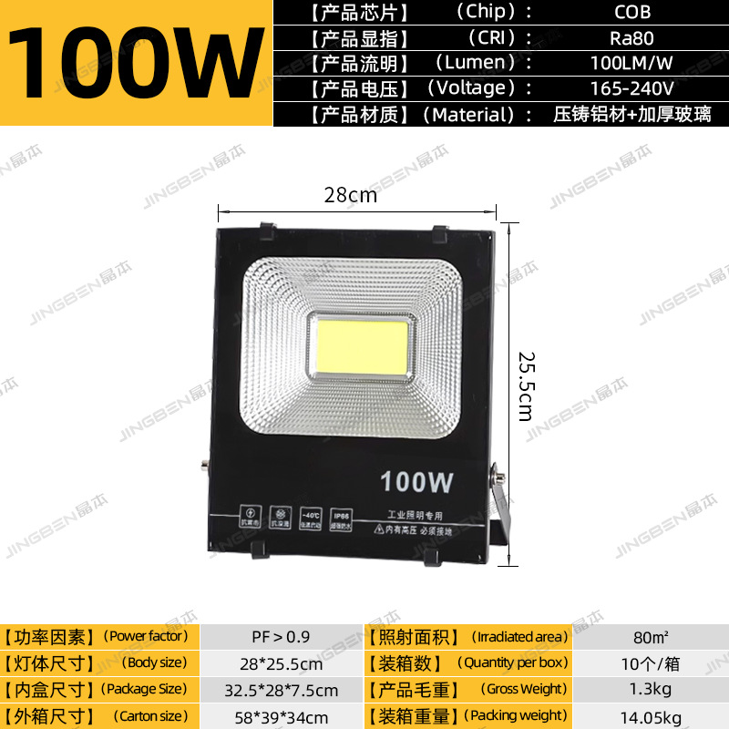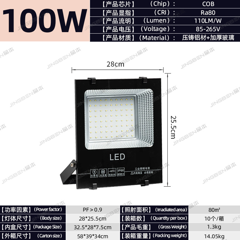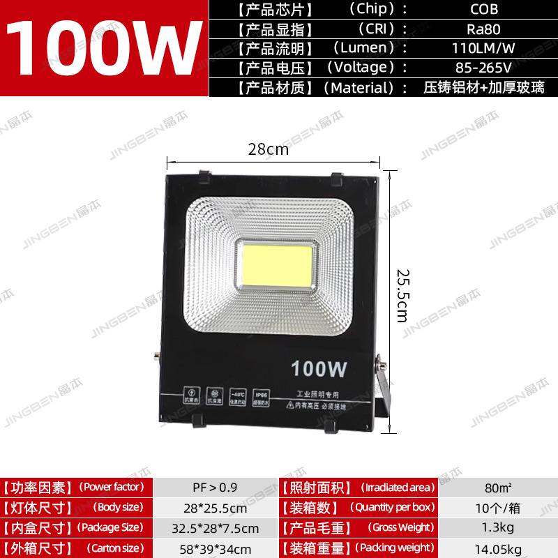 • 건설 현장 추천 - 100W | 집광 COB 칩 | 정격 와트, 허위 스펙 없음