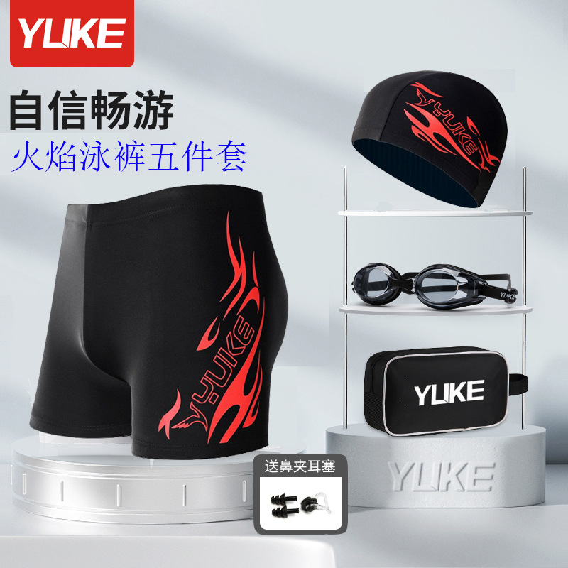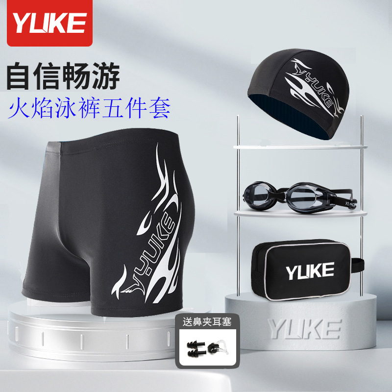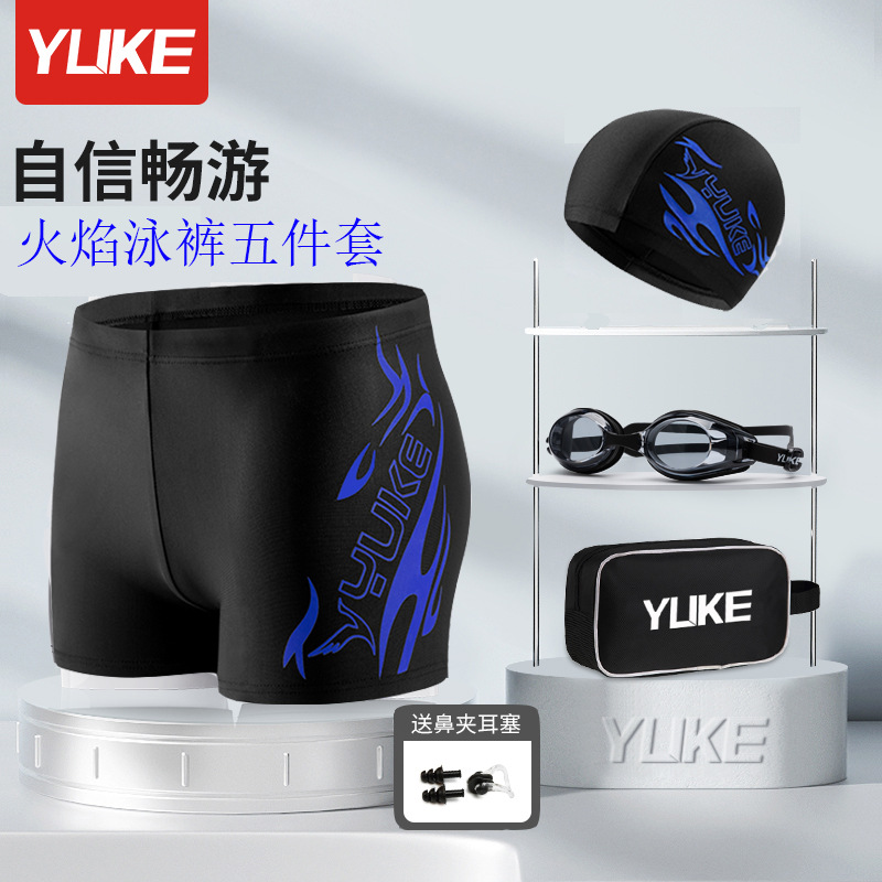 수영 트렁크 남자의 새로운 성인 수영복 플러스 사이즈 수영 모자 수영 고글 세트 남자의 빠른 건조 다이빙 수영 반바지 도매