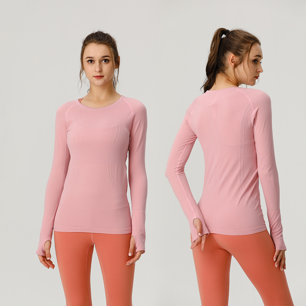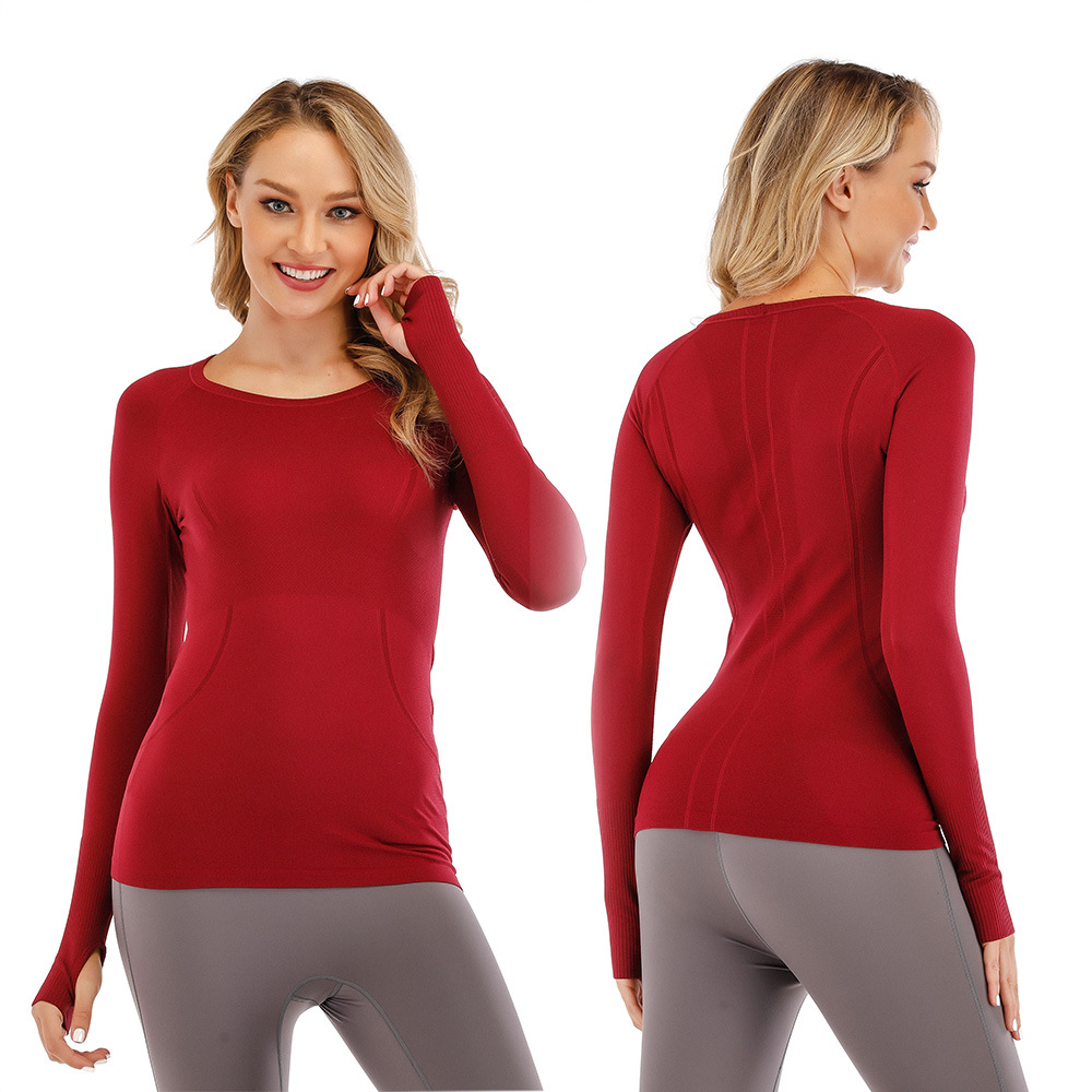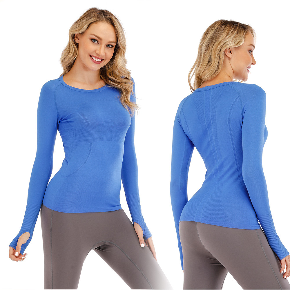 1.0 여성용 긴팔 스포츠 요가 티셔츠 속건 크루넥 요가 러닝 피트니스 탑 땀 흡수 스타킹스토어 가기