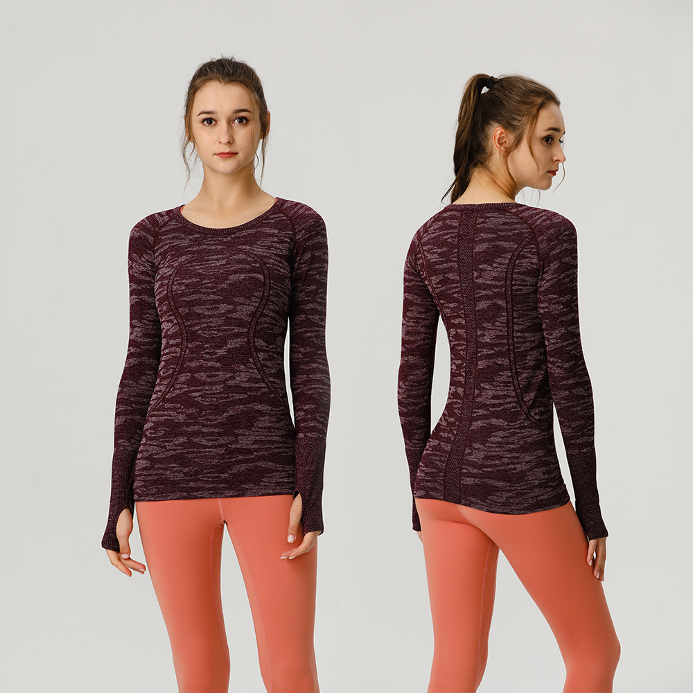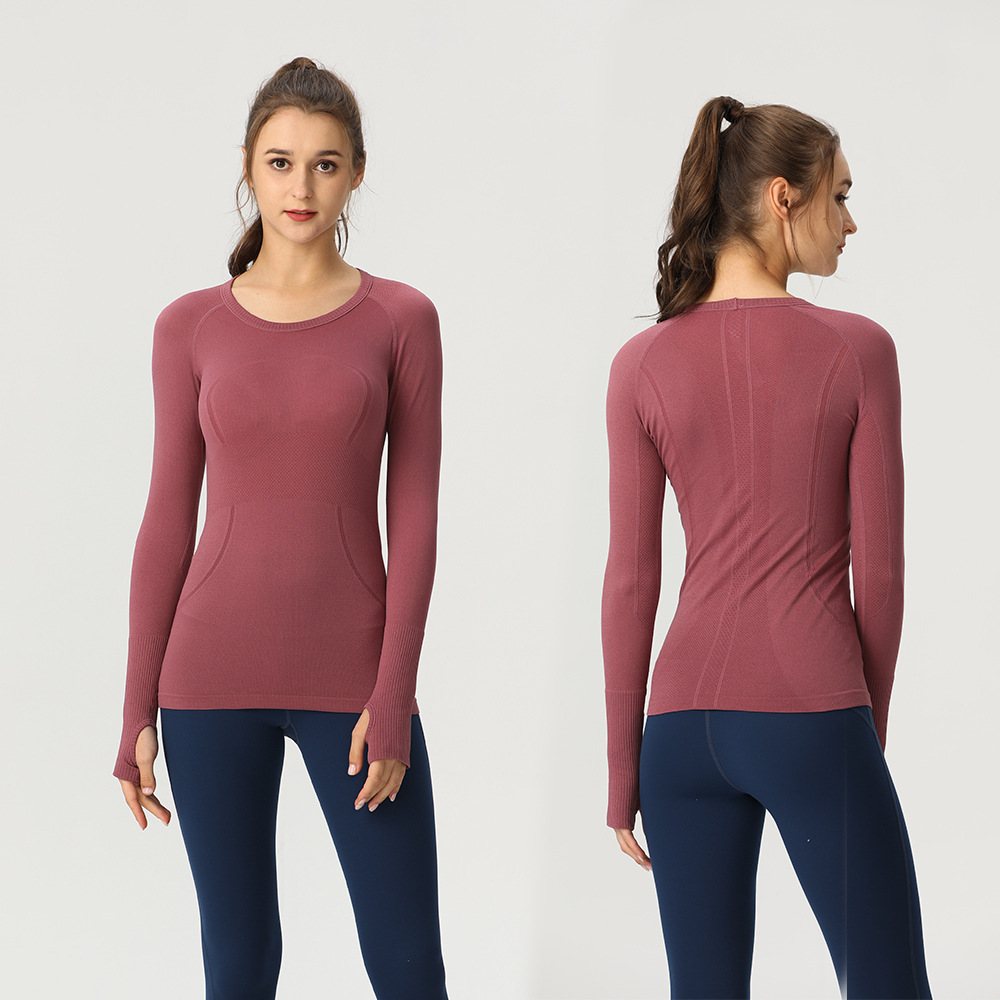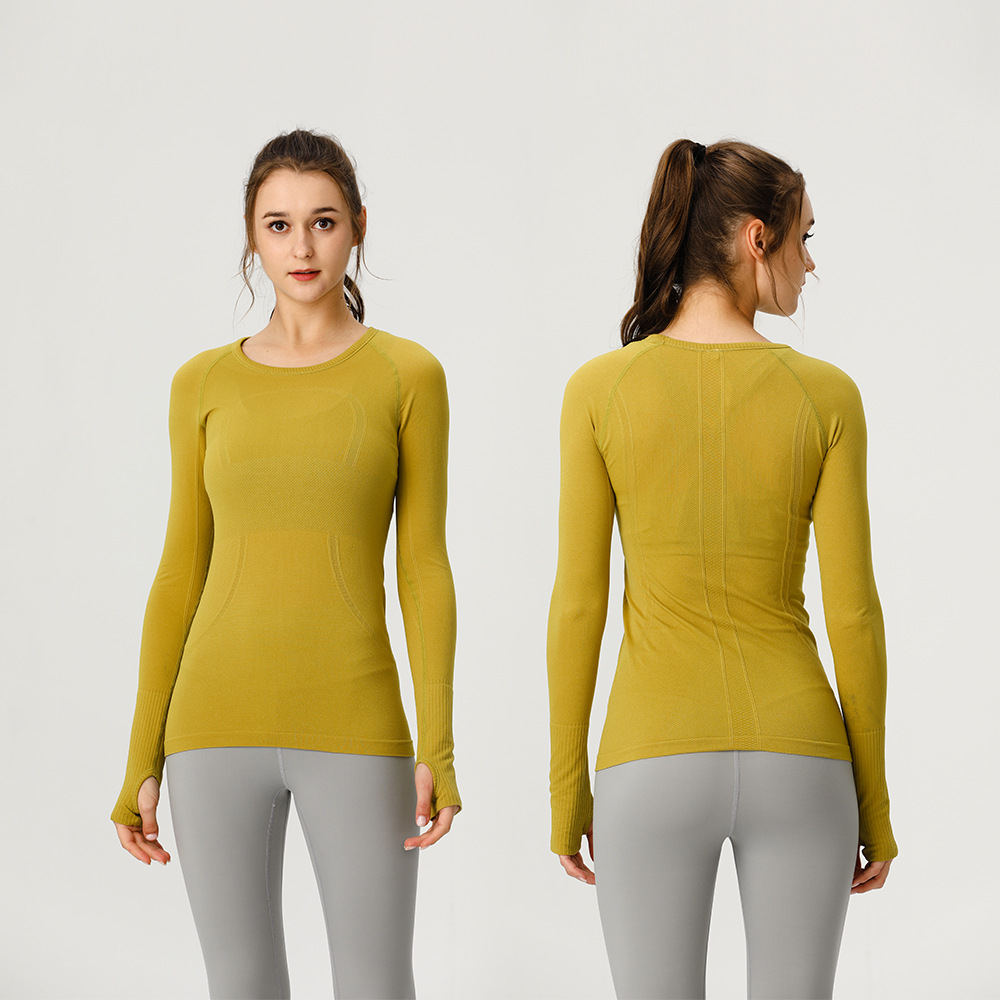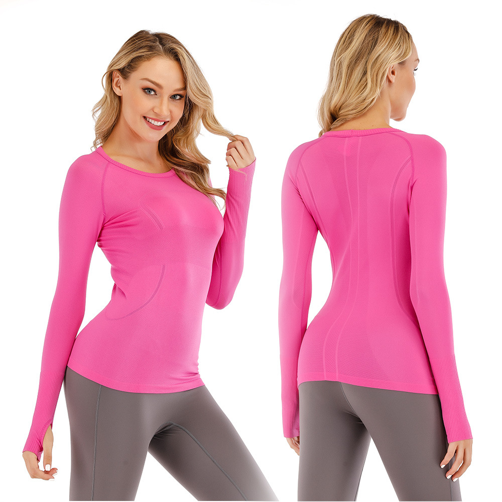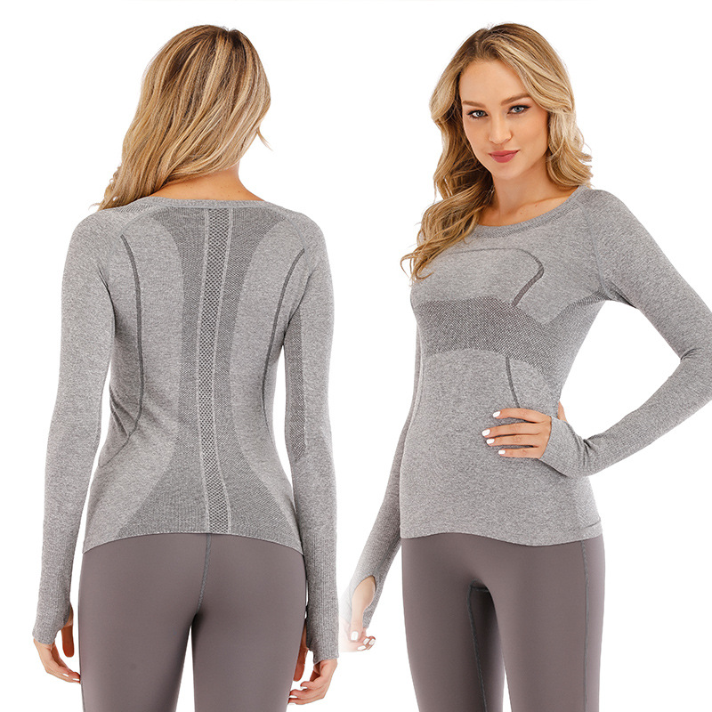 1.0 여성용 긴팔 스포츠 요가 티셔츠 속건 크루넥 요가 러닝 피트니스 탑 땀 흡수 스타킹