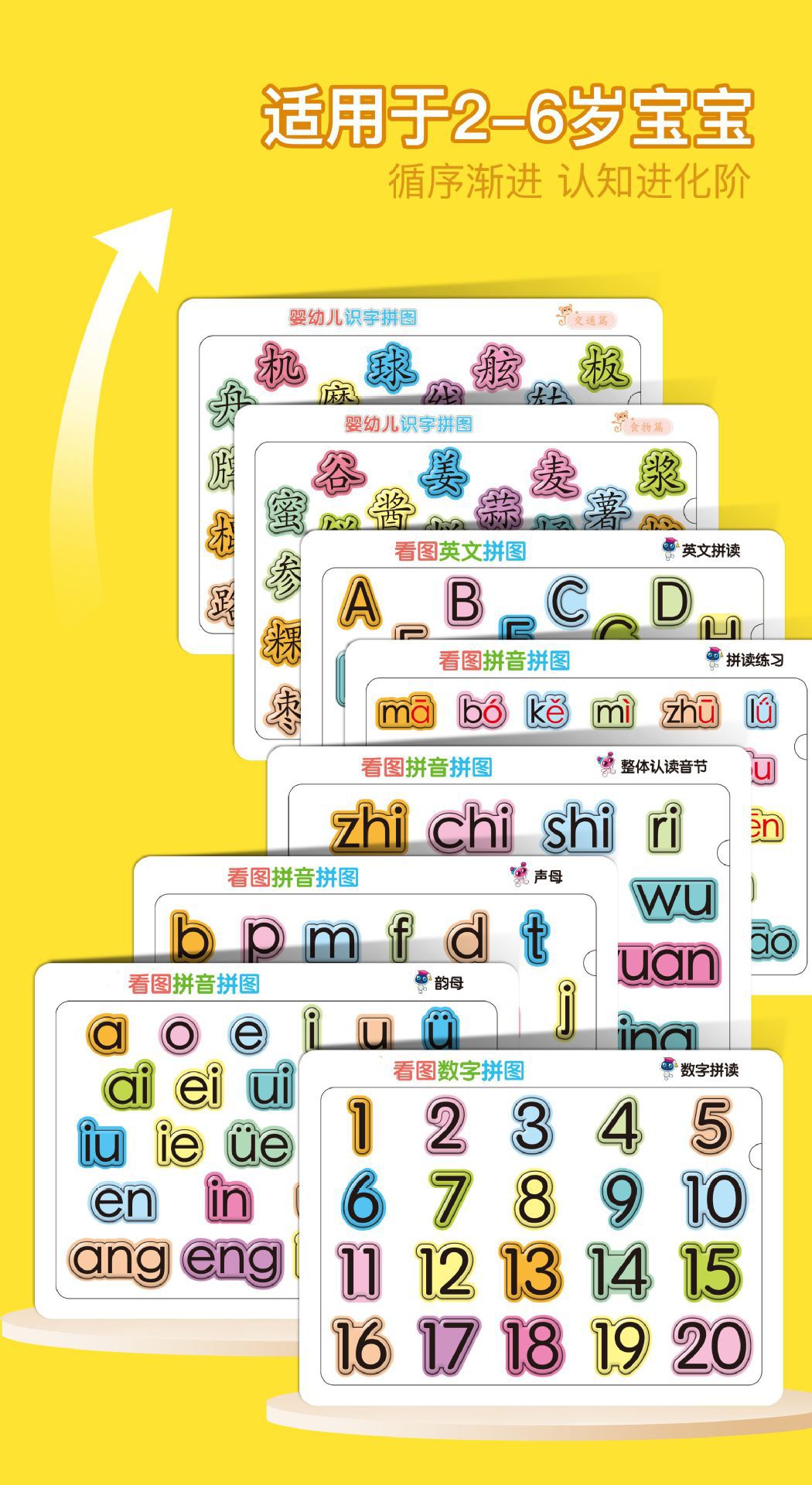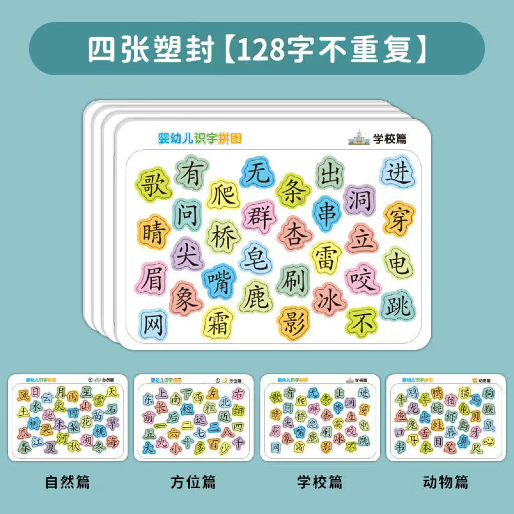 品名:识字拼图 箱规:可单张到8张塑封,具体联系客服定制