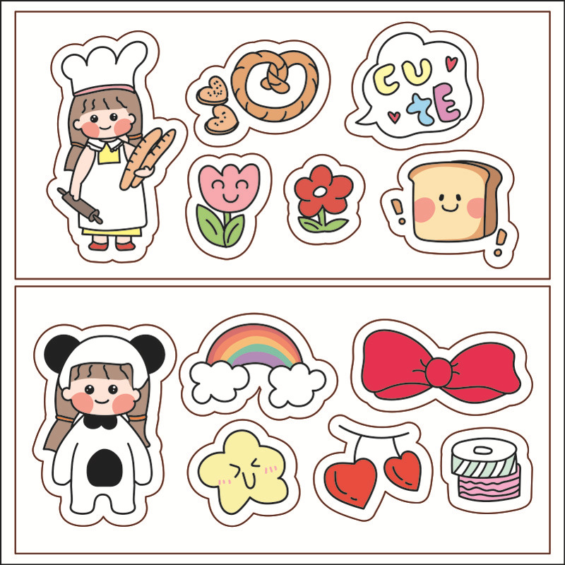 사랑 폴카 도트 다섯개 별 달콤한 소녀 대량 선물 장식 스티커 스티커 세트