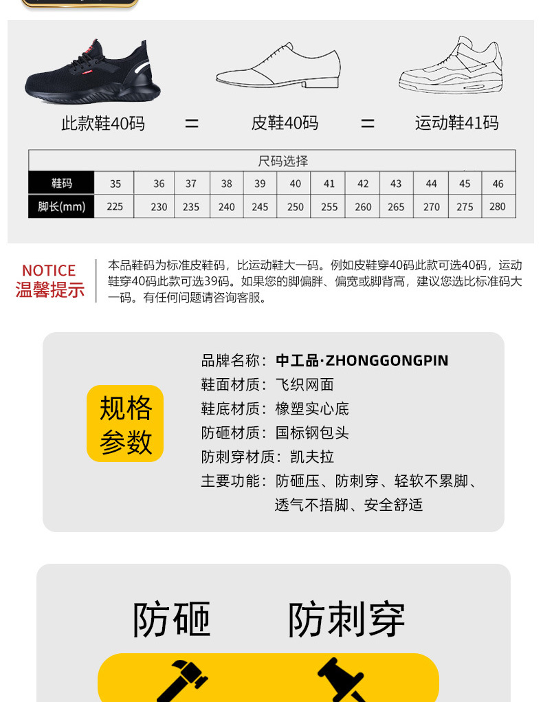 남성용 크로스보더 작업화, 충격방지, 펑크방지, 내마모성, 통기성, 냄새방지, 경량, 안전보호화, 장시간 서 있어도 피곤하지 않음, 미끄럼방지스토어 가기