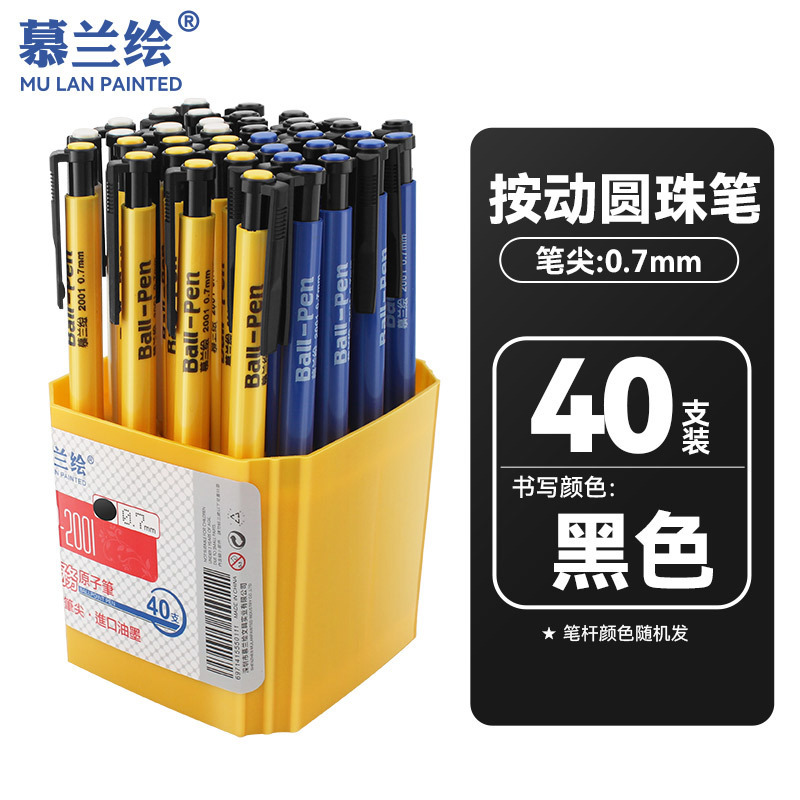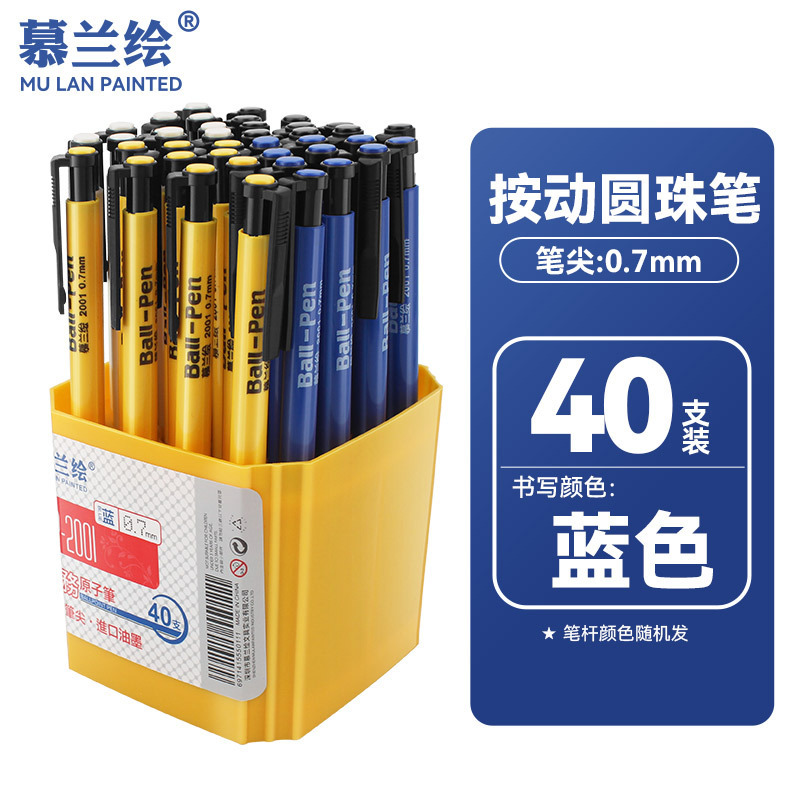 慕兰绘圆珠笔学生按压式中油笔蓝色0.7mm红黑多色原子笔油笔