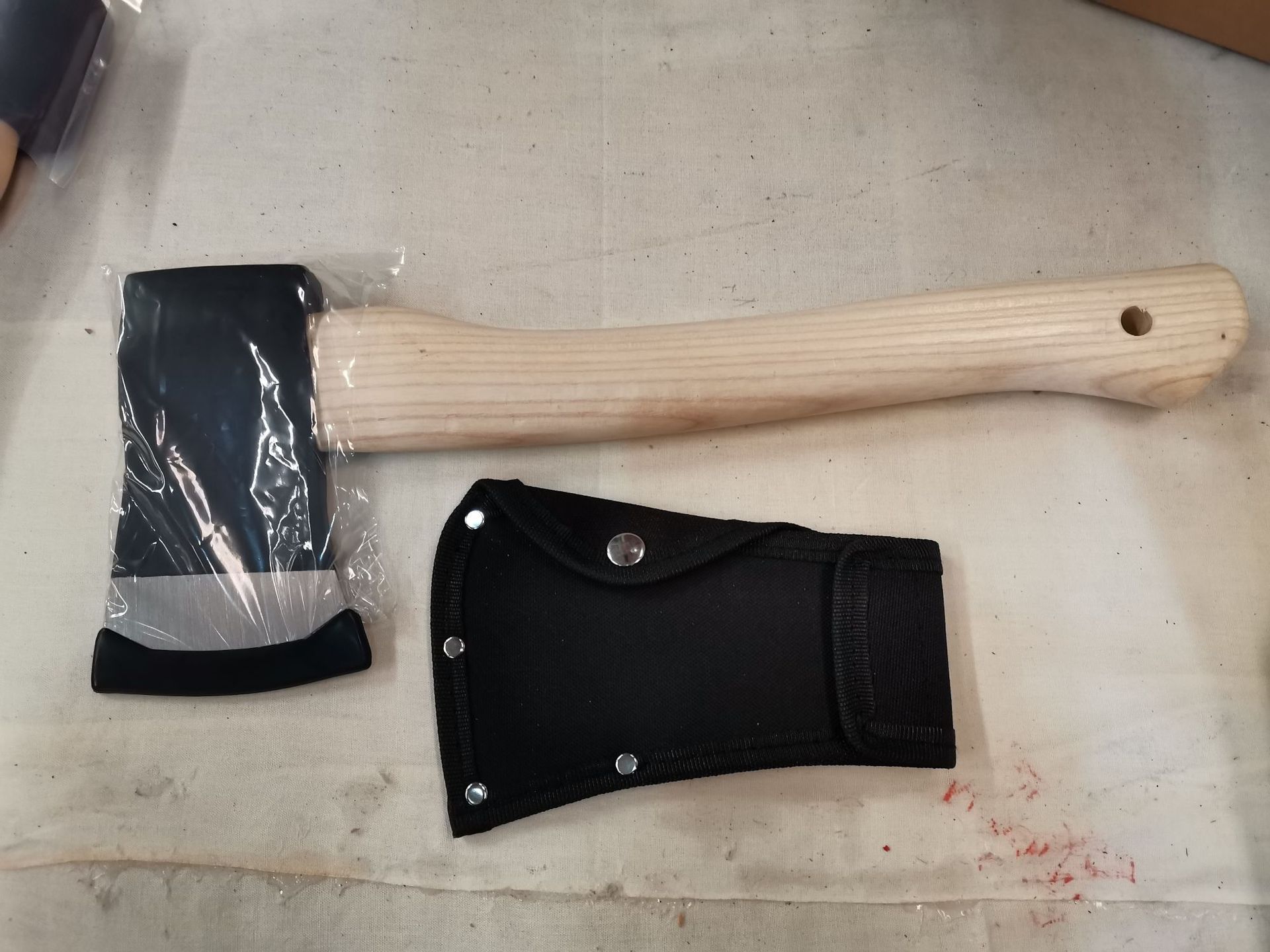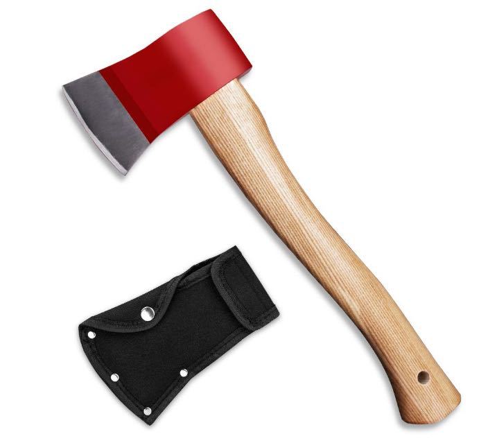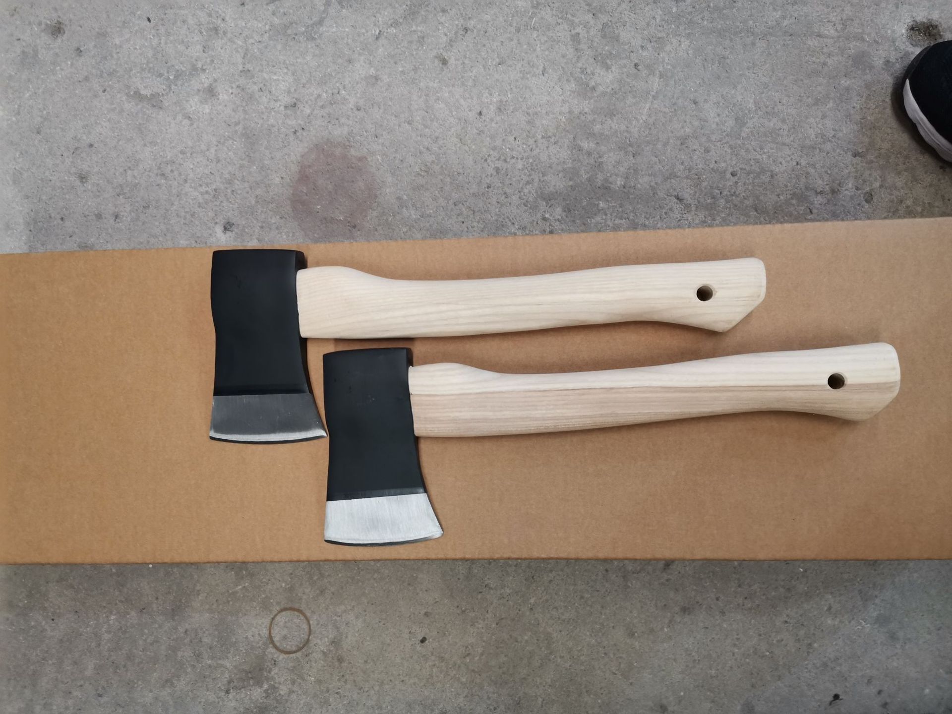 1.斧头喷塑,进口水曲柳柄,尾部打孔,方便挂绳, 送护套,红色和黑色头两种,颜色自选。