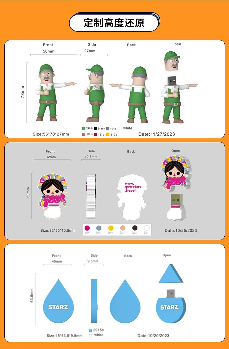 二.关于数量:200个起订,定制个性外形,实单免费设计效果图,量大免费打样;